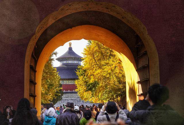 - 建筑呼应:金黄树冠与皇乾殿的琉璃瓦、祈年殿的三重檐轮廓线相呼应,凸显“天圆地方”的坛庙格局。