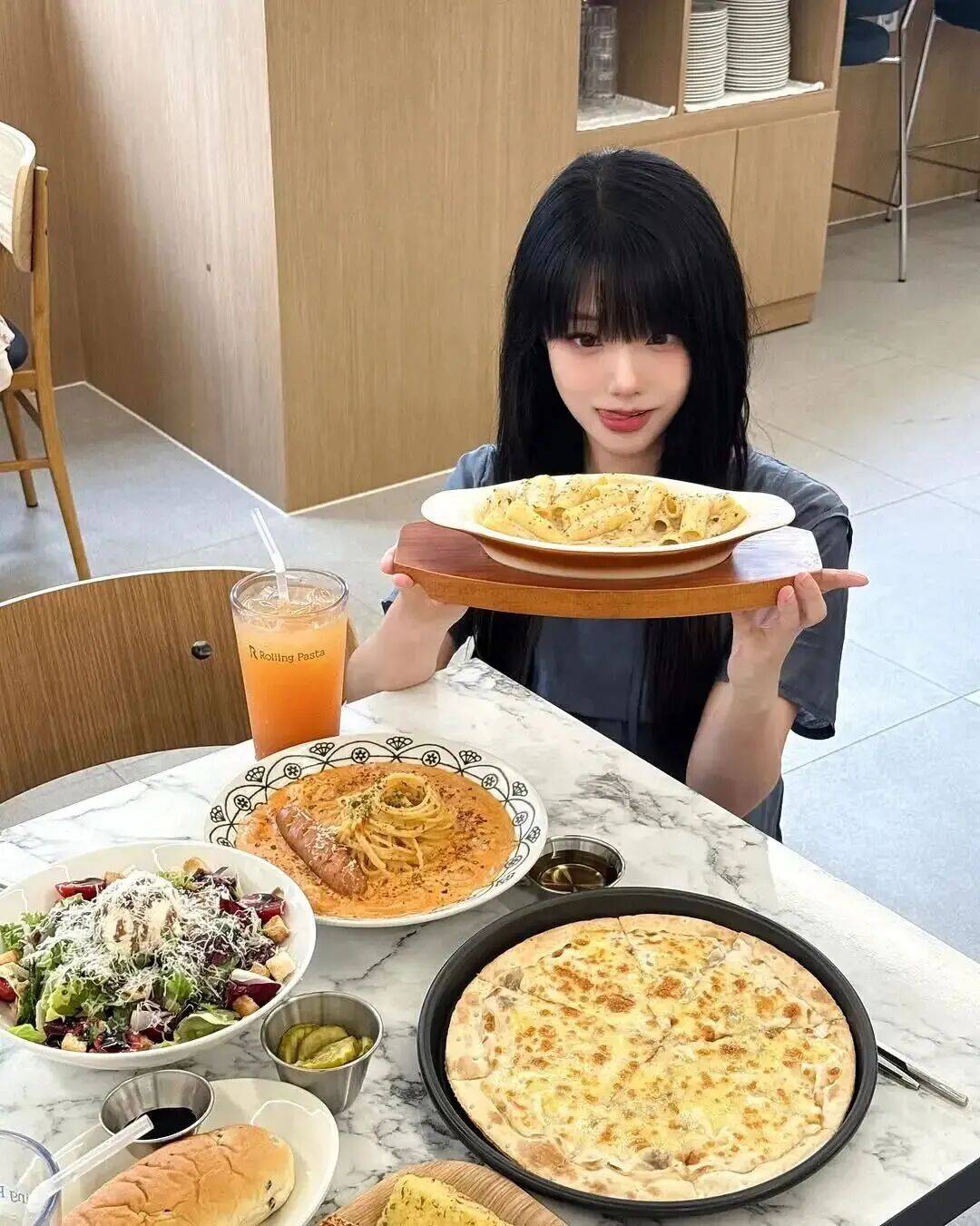 她擅长打造轻法式韩系风,例如: