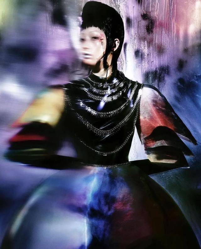 解构重组:将传统元素(如民族图案)与未来主义结合,通过撕裂、拼接重塑服装层次。