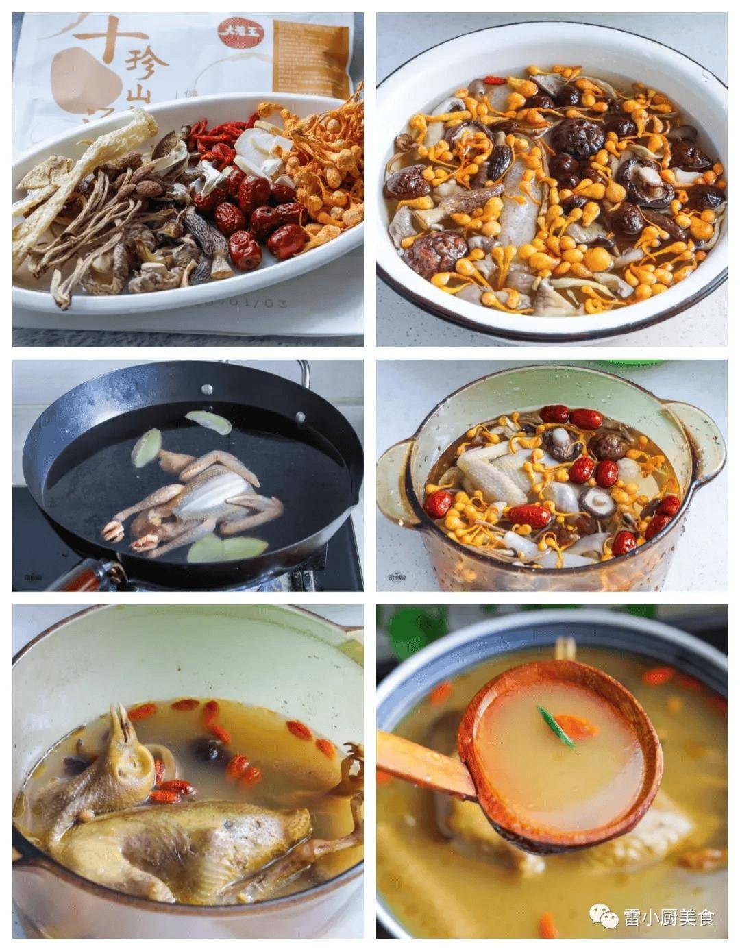 4、炒过的鸡肉放进砂锅或者珐琅锅里,加入足量的水,再倒入菌菇包,大火煮开,改小火煲2个小时。煲汤的过程中真的是满屋的香味哟。