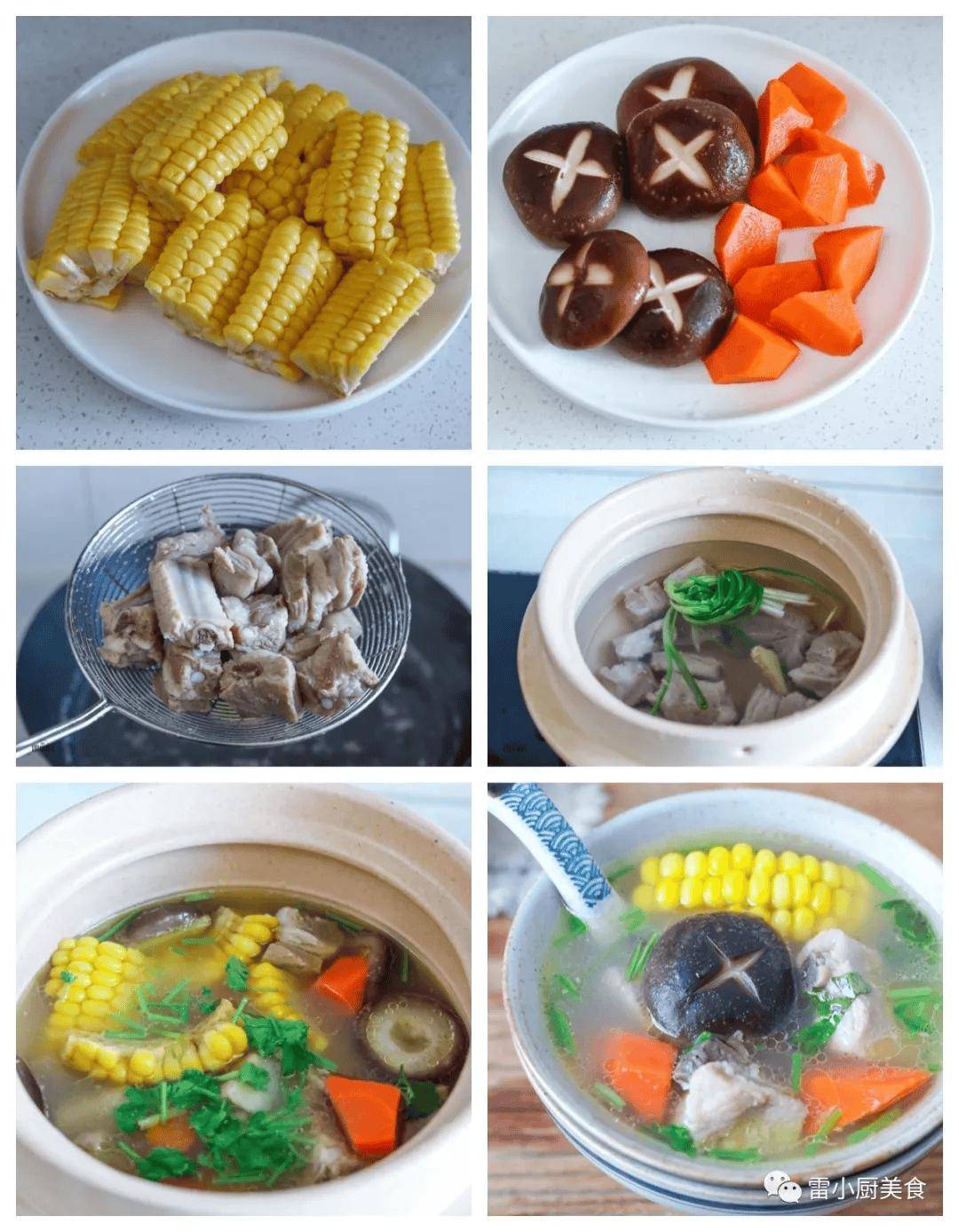 食材:排骨,玉米,香菇,胡萝卜,生姜,小葱,料酒,食盐,