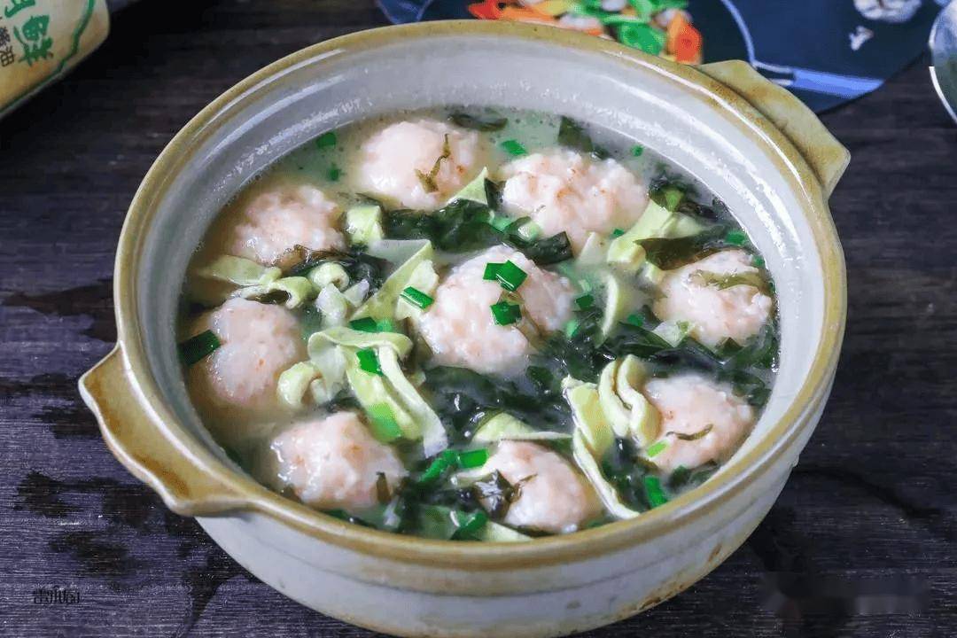 新鲜的虾含有非常丰富的优质蛋白质,做成虾丸一口一个,搭配紫菜营养更加丰富。