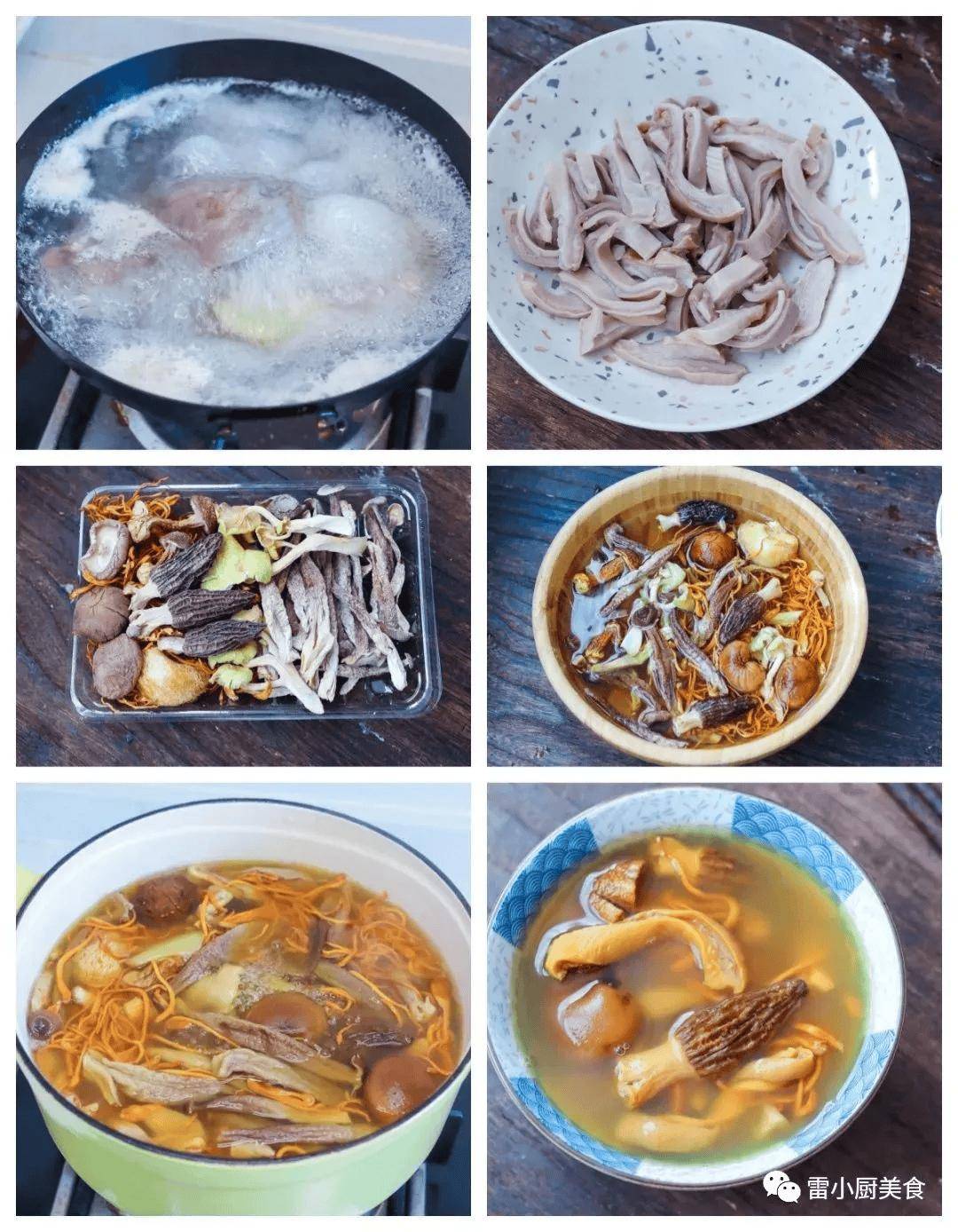 1、把山菌汤料从袋子里倒出来,这个汤料特别的丰富,包含红枣,山药,蛹虫草,鲍鱼菇,香菇,茯苓,茶树菇,枸杞,竹荪,羊肚菌,用它煲出来的汤特别的滋补。