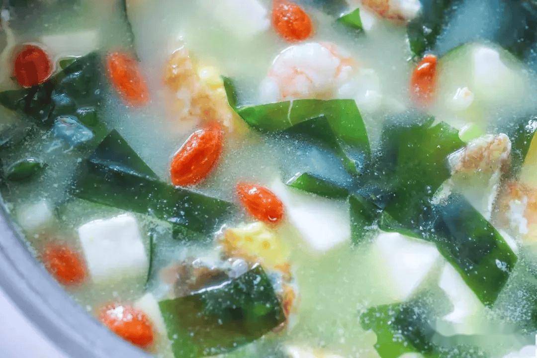 虾仁的维生素D与豆腐的钙结合,提升钙利用率;裙带菜进一步强化补钙,儿童及老人尤宜。