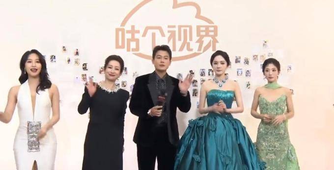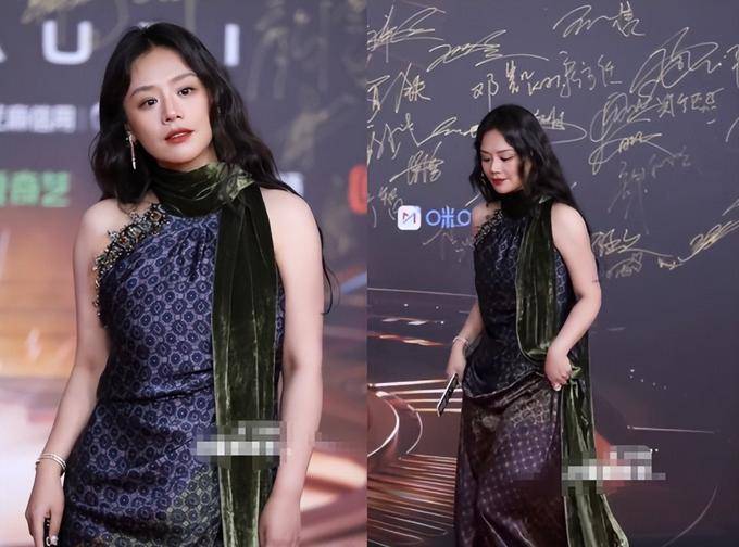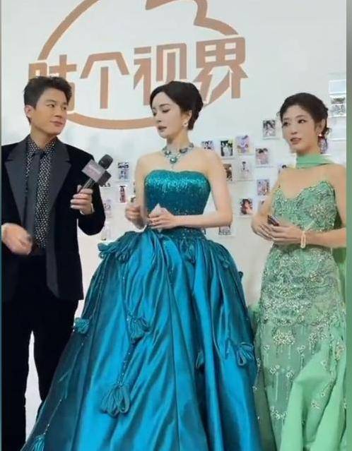 蓝盈莹的领子与开叉的裙装似乎都想将它们紧密相连,邢菲的绿色显得有点便宜。