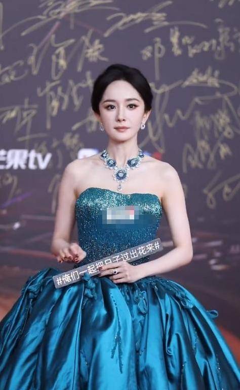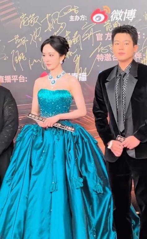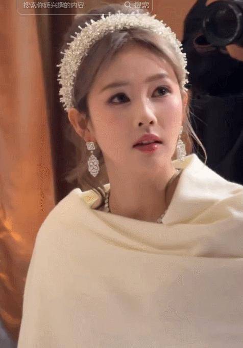 她脖子上那颗巨大的钻石项链,似乎在模仿刘亦菲的样子。