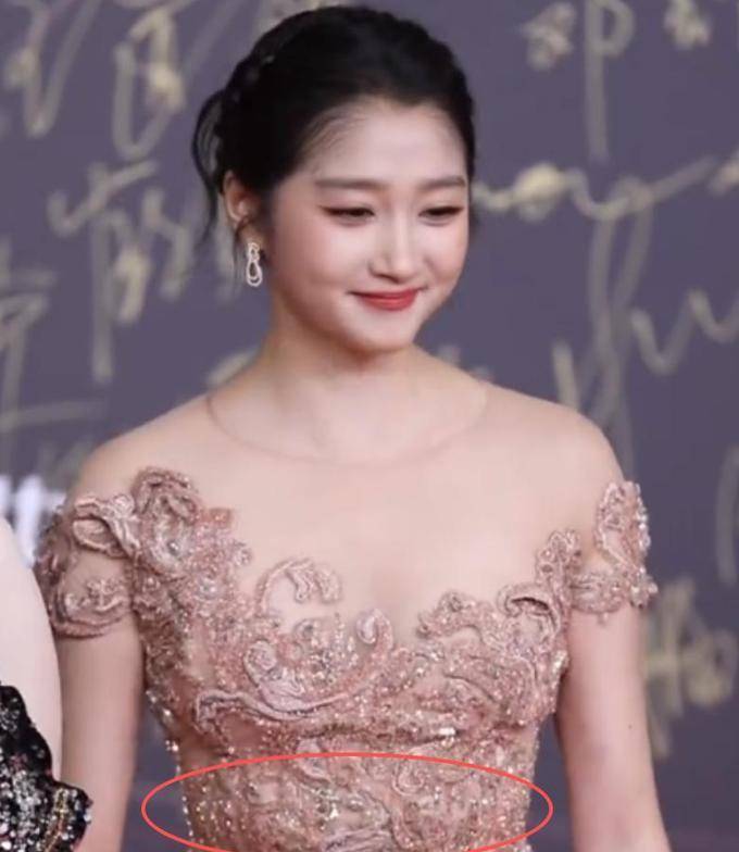 巧合的是,关晓彤与蒋欣均穿着肩部比臀部宽的服装,显得人更壮。关晓彤的裸粉色礼服虽合身,但肩型设计放大了这一特点。