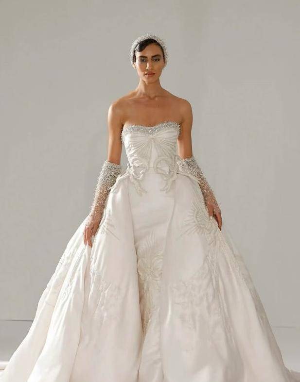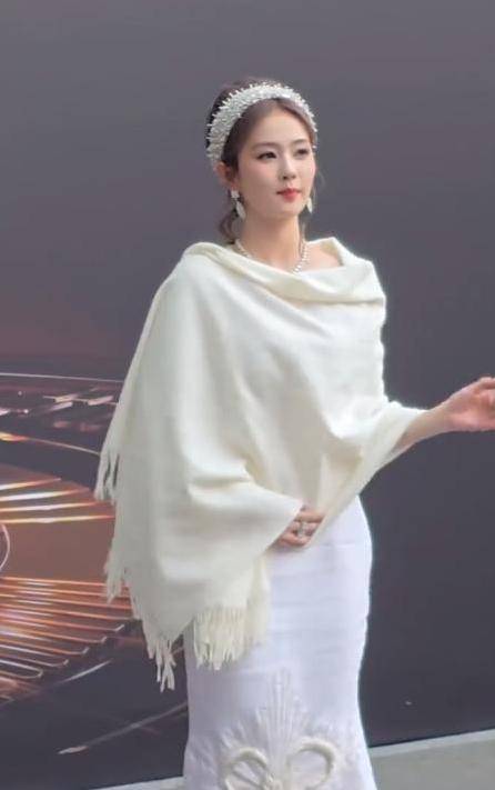 身着经过改良的白色高定裙,再配上珍珠头箍,真的显得非常漂亮。
