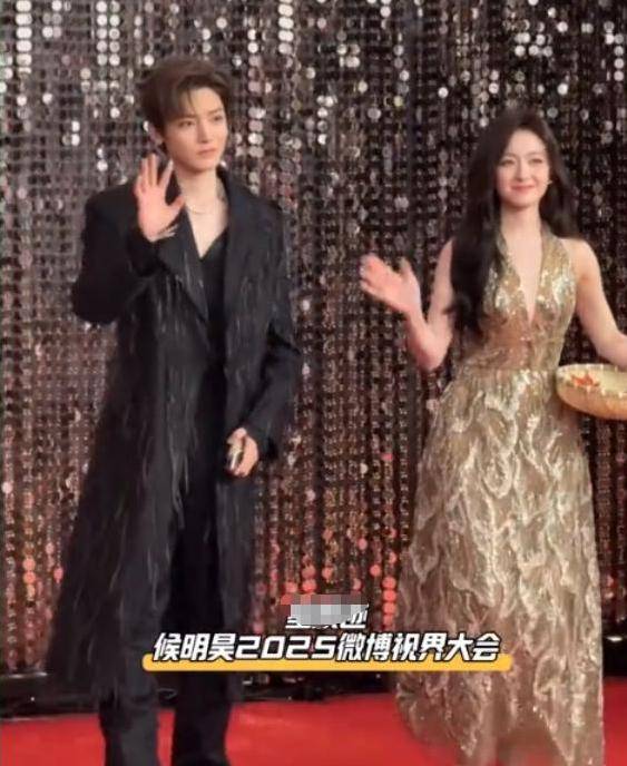 从未合作过的侯明昊(黑色造型)与李兰迪(金色闪亮服饰)在红毯上被主办方安排合影,两人穿着风格相似,意外形成“情侣装”既视感。在bulingbuling背景墙下,他们的互动成为红毯初期的一大亮点,主办方的刻意安排也凸显了对新人的关注。