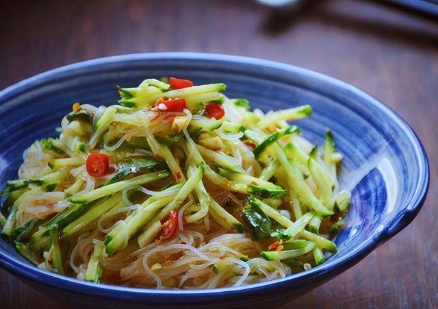 食材:黄瓜1根、龙口粉丝1小把、小米辣2个、生姜、香菜、辣椒油1勺、酱油2勺、醋2勺、盐、香油