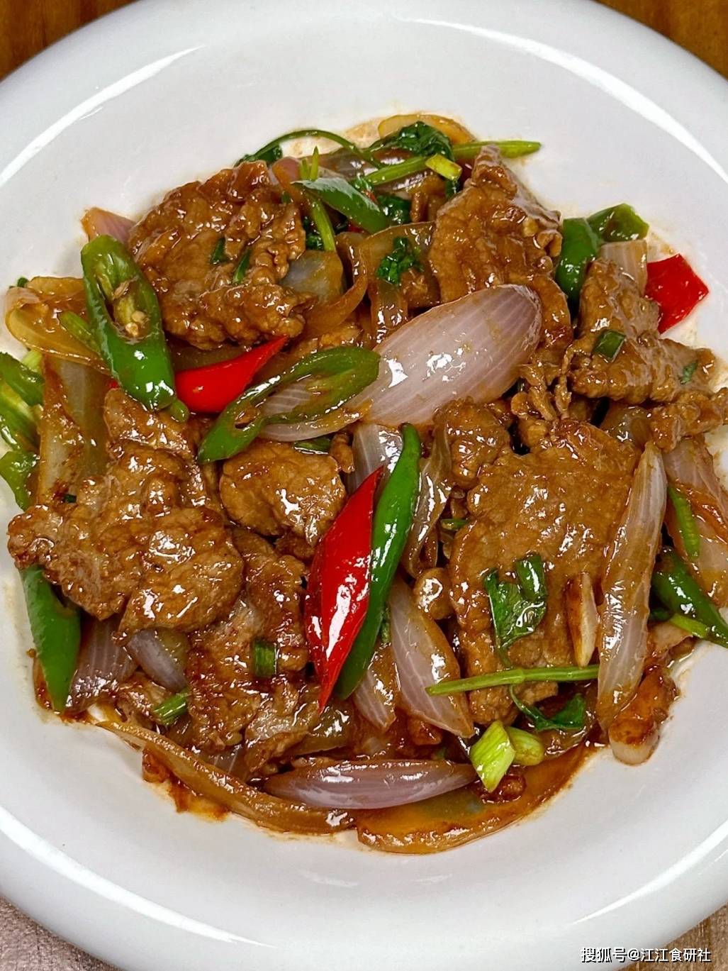 青红椒洋葱炒牛肉,是一道快手又下饭的经典。