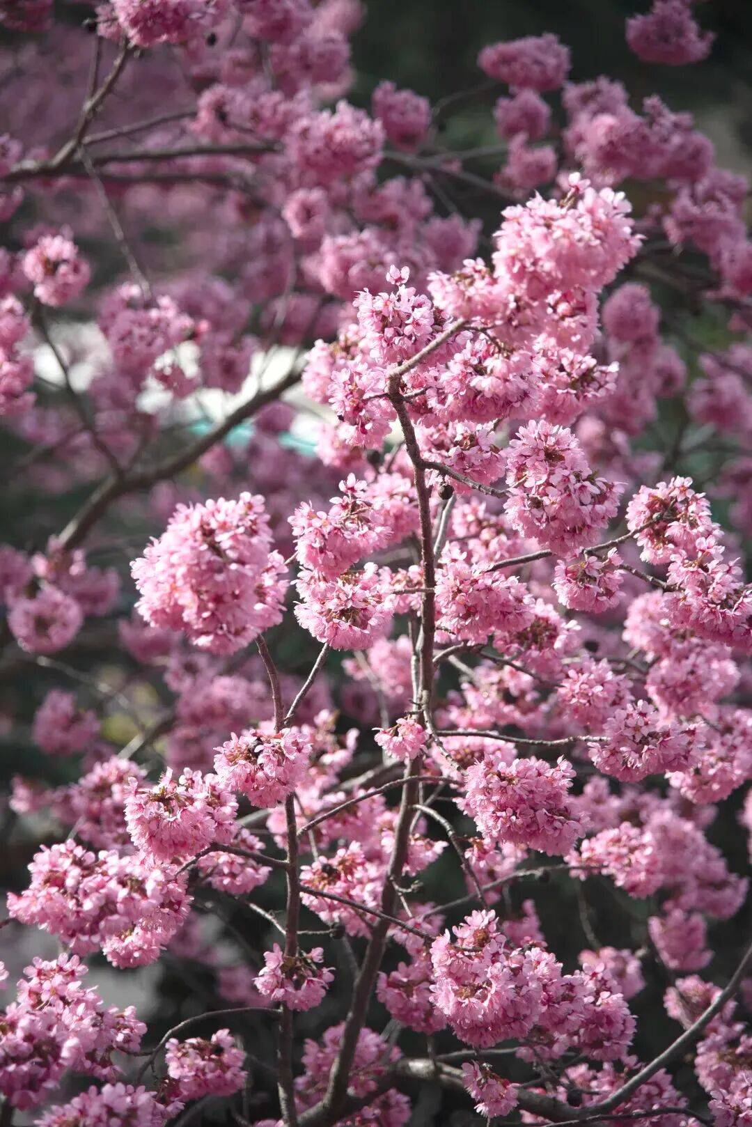 花期刚好卡在圣诞到元旦之间,填补了冬季“花荒”的空白,满树繁花盛开时,远远望去像一团粉色的云。