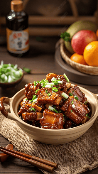 排骨焯水去浮沫,糖色炒到琥珀光。加热水来小火焖,四十分钟肉自酥。盐在最后方可放,收浓汤汁挂酱香。