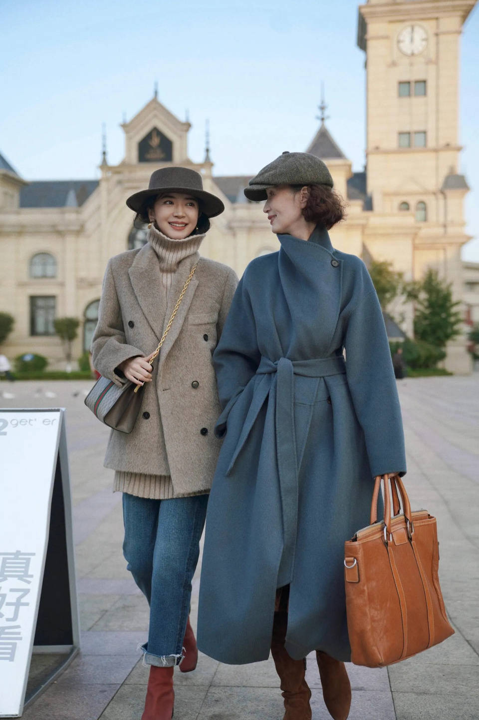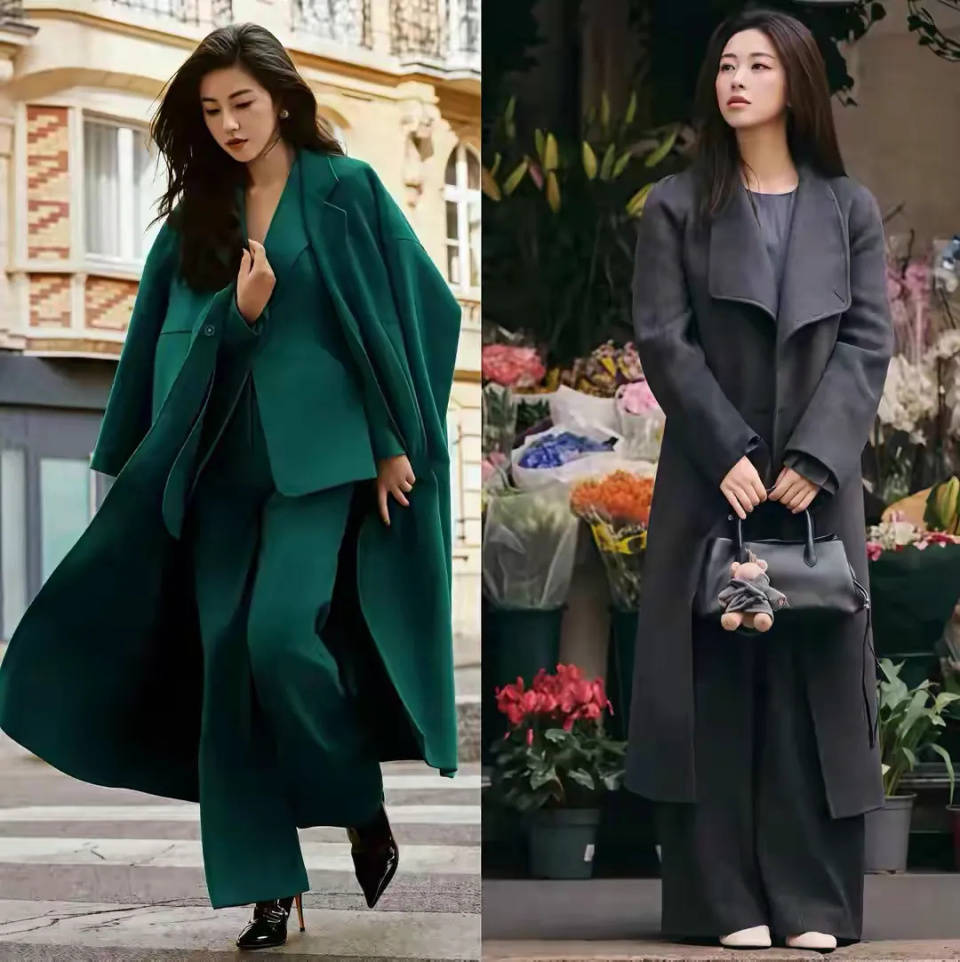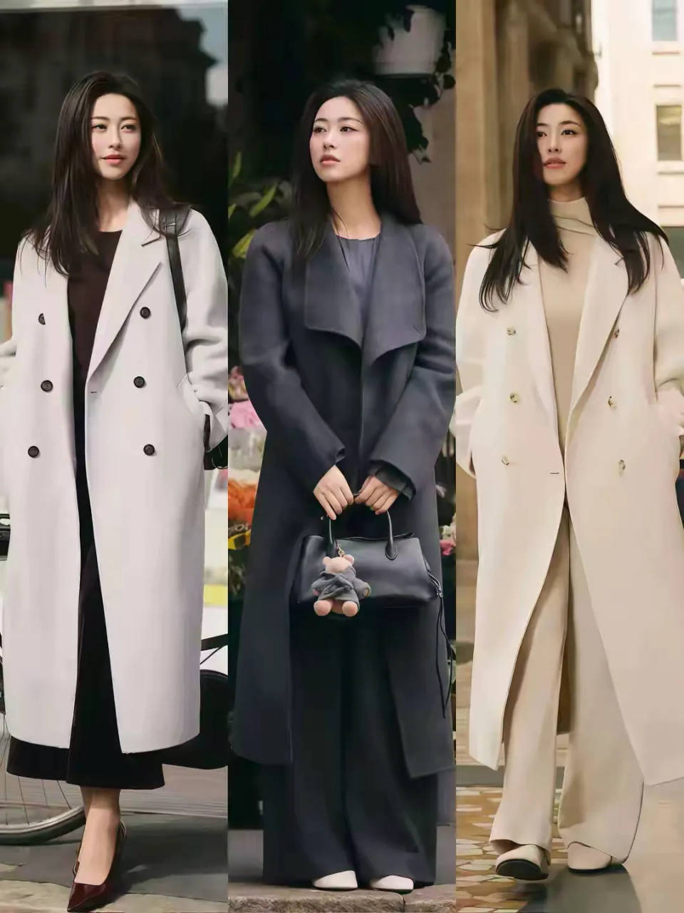 不过有一点一定要注意,不管穿的是阔腿裤、直筒裤还是裙子,选择的鞋子鞋跟尽量不要太高,控制在小于 6cm 左右最佳,或者是低跟单鞋穿在脚上会更舒适。当然,带点鞋跟也非常不错,可以更好的延伸咱们的腿部线条。就像“朱珠”上面这 3 套穿搭就给出了我们明确的答案。第四章节:大衣搭配阔腿裤,遮肉又干练