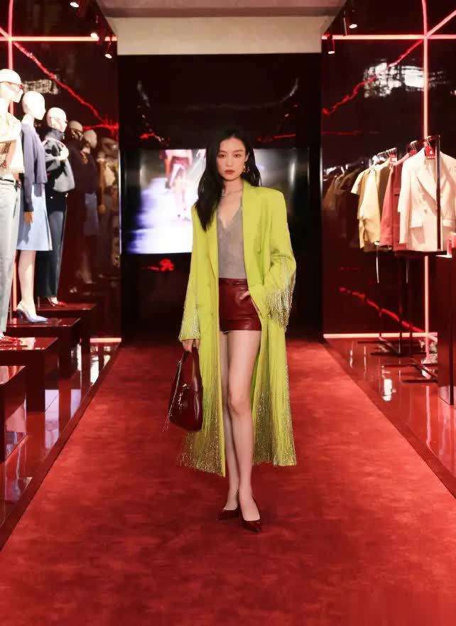 今天咱们来看一下女明星朱珠的穿搭技巧,她的大衣穿搭确实很有气场,值得我们职场女性借鉴一番,例如上面绿色大衣搭配绿色的西服套装,脚穿黑色高跟鞋,高级大气。