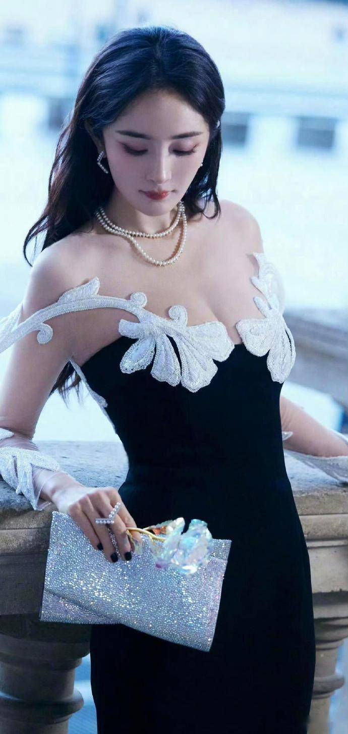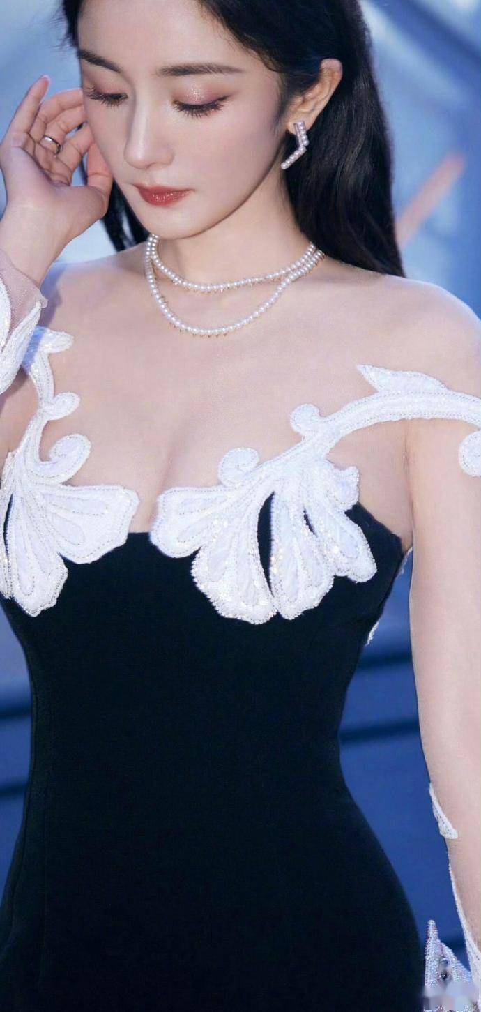 在配饰方面,杨幂同样展现了她的高超品味。她佩戴了一条精致的珍珠项链和一对闪亮的耳环,这些配饰虽然不大,但却非常抢眼,与礼服的黑色形成了鲜明对比,使她的整体造型更加华丽。她的发型也经过精心打理,几缕发丝自然垂落,增添了几分柔美。