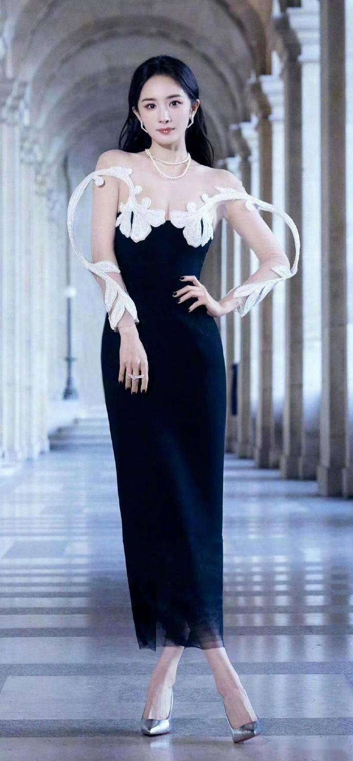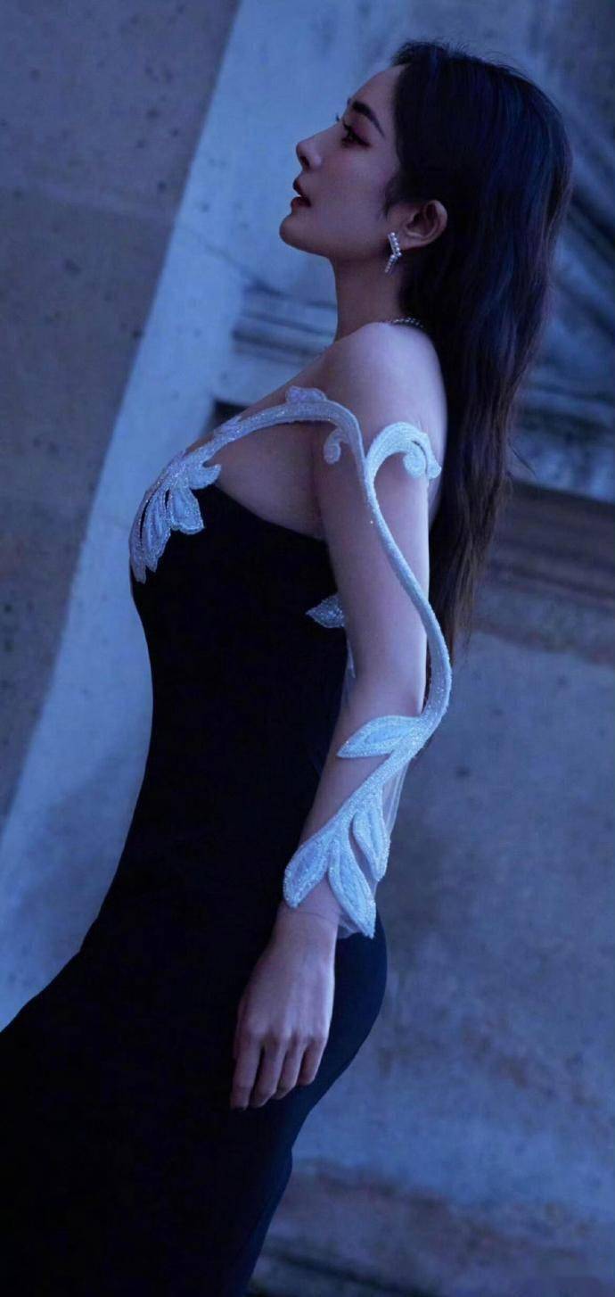 杨幂选择的这件黑色礼服,设计独特,充满了神秘感。礼服的上半部分采用了露肩设计,搭配白色蕾丝装饰,既展现了她的性感锁骨,又增添了几分优雅。礼服的剪裁紧贴身形,完美勾勒出她的曲线美,让人不禁赞叹。