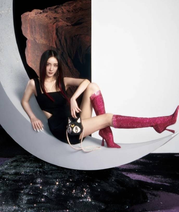 未来感“踏月而来”大片:以月亮造型为背景,神秘浪漫氛围拉满。亮粉色长靴搭配黑色镂空短裙,烈焰红唇与露背红裙造型更是致命诱惑。挑染发丝增添不羁个性,眼神仿佛在诉说星际冒险故事,科技感与酷飒风完美拿捏。