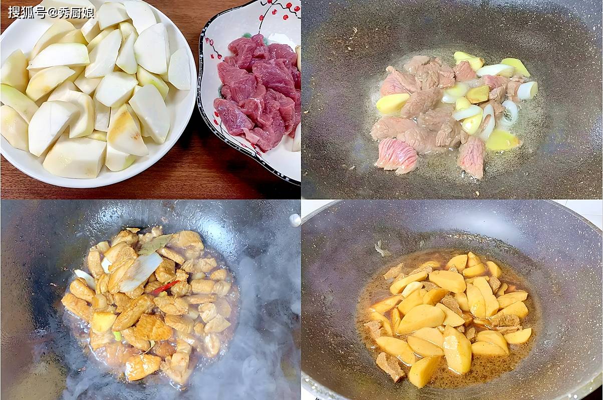 处理食材:牛肉(牛腩或牛腱子)切块,冷水下锅加姜片、料酒焯水去血沫;芋头去皮(戴手套防痒)切滚刀块。