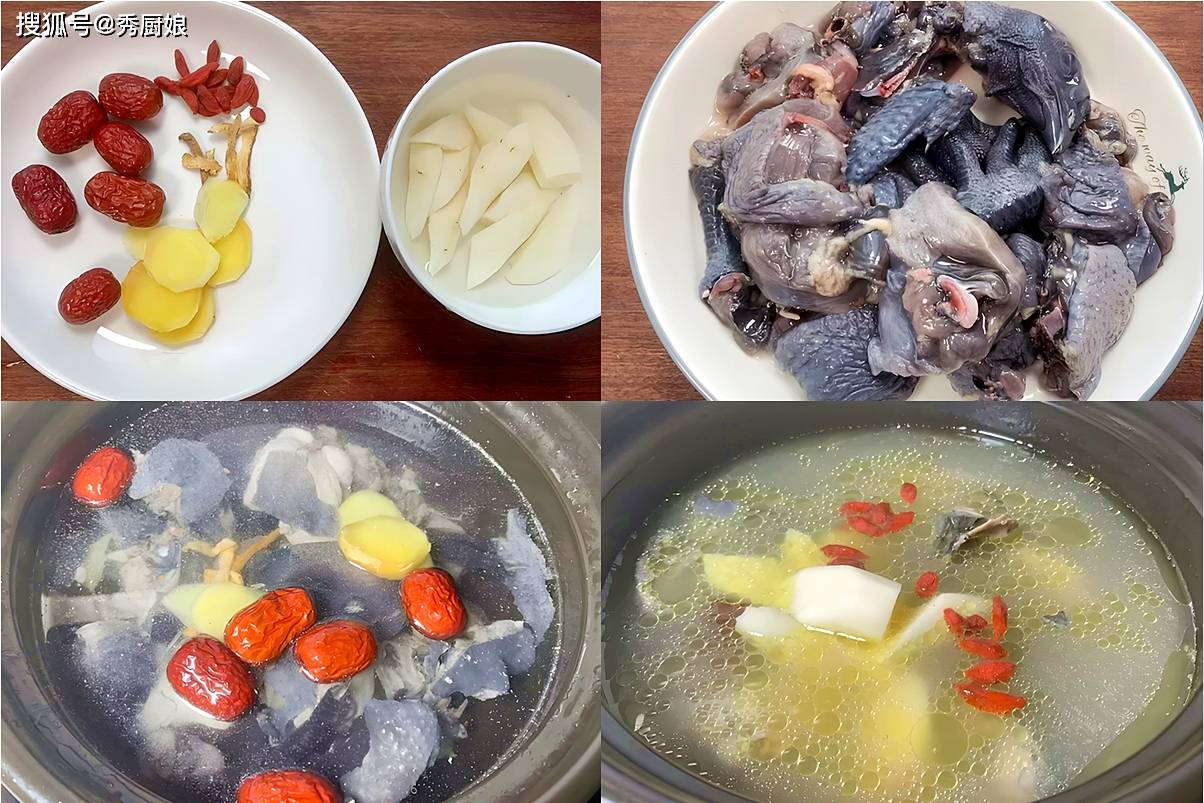 1. 乌鸡洗净斩块,冷水下锅加姜片、料酒焯水,捞出洗净。