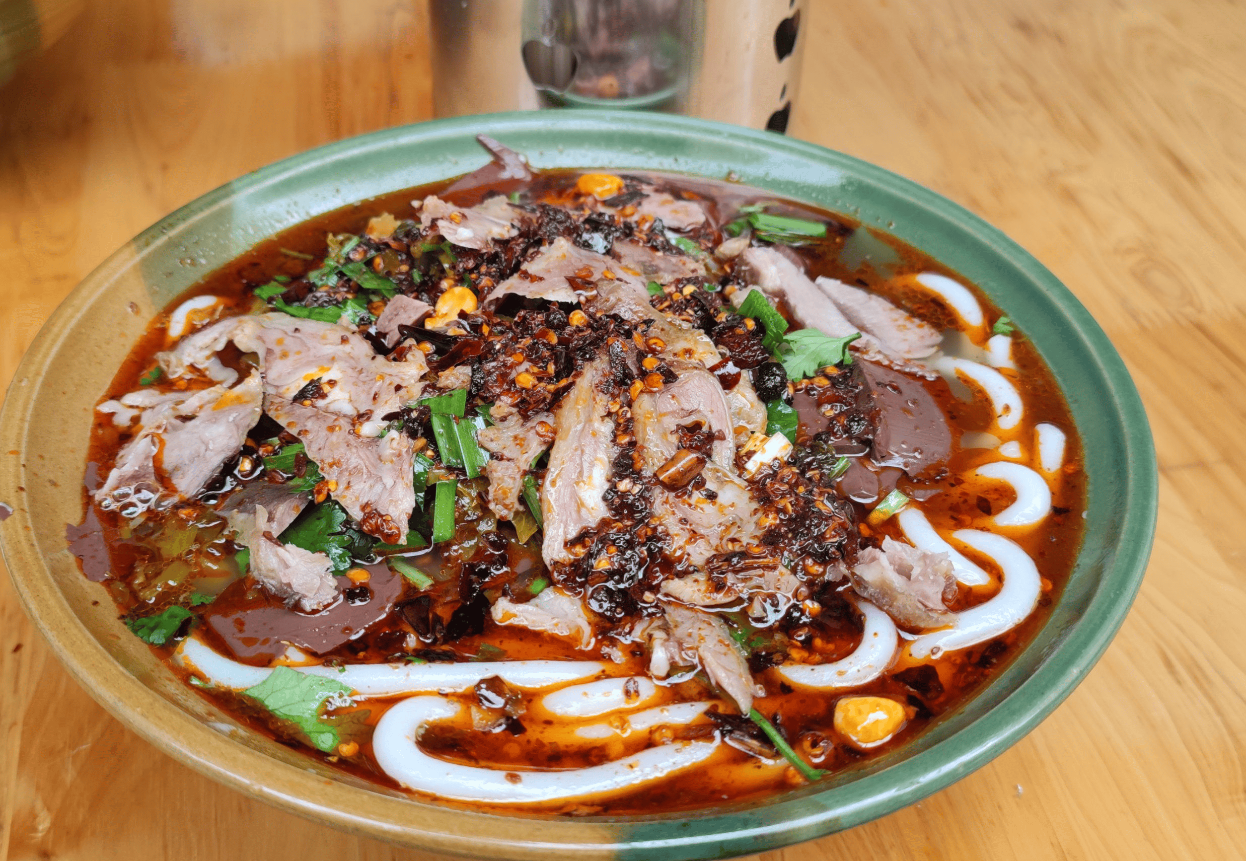 羊肉选的是当地散养的黑山羊,肉质紧实不柴,先用水浸泡去血沫,再加上八角、桂皮、香叶等香料慢炖 3 小时,炖到羊肉能用筷子轻松戳烂,汤也熬成奶白色,浓郁得挂在勺子上不掉。米粉是用本地大米做的,细滑有嚼劲,煮好后捞进碗里,浇上滚烫的羊肉汤,放上几片炖烂的羊肉,加勺油辣椒和蒜苗。嗦一口米粉,滑溜溜的米粉吸饱了羊肉汤的鲜,再咬一块软烂的羊肉,连汤带粉吃下去,浑身都暖和起来,寒冬里吃一碗,从头暖到脚。