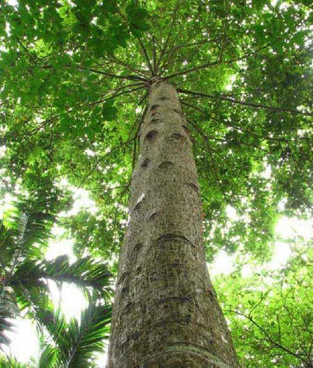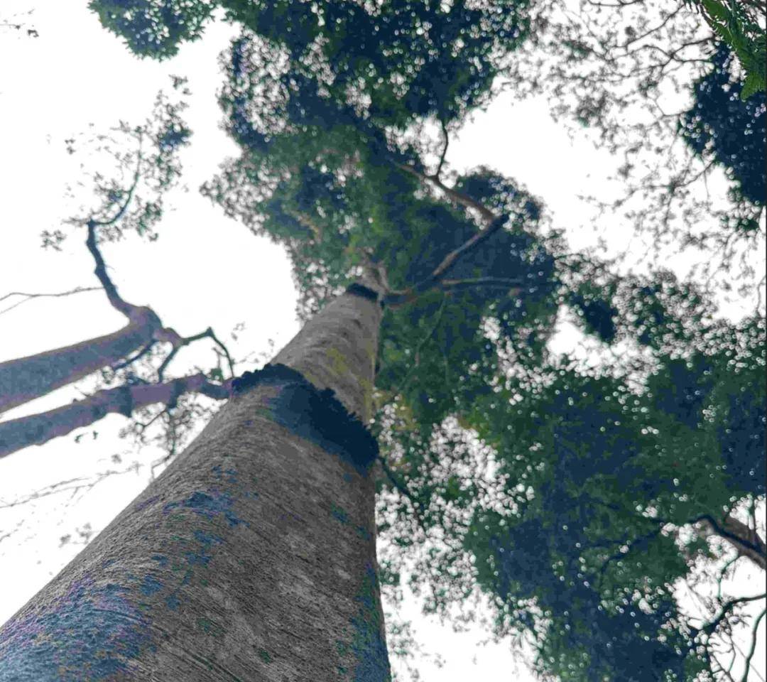 如今的广西青梅,已经是119岁的“老寿星”。它扎根在陡峭的坡地上,35米的身高直插云霄,胸径足有51厘米,两个成年人张开双臂抱在一起,才能勉强把它“圈住”。