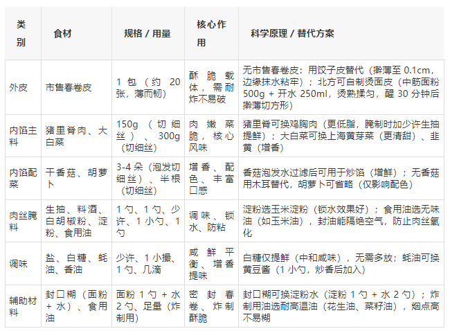 春卷的成败,从馅料处理到炸制都藏着 “物理锁水” 与 “热学脆化” 的科学,这三点是底层逻辑,必须先搞懂!