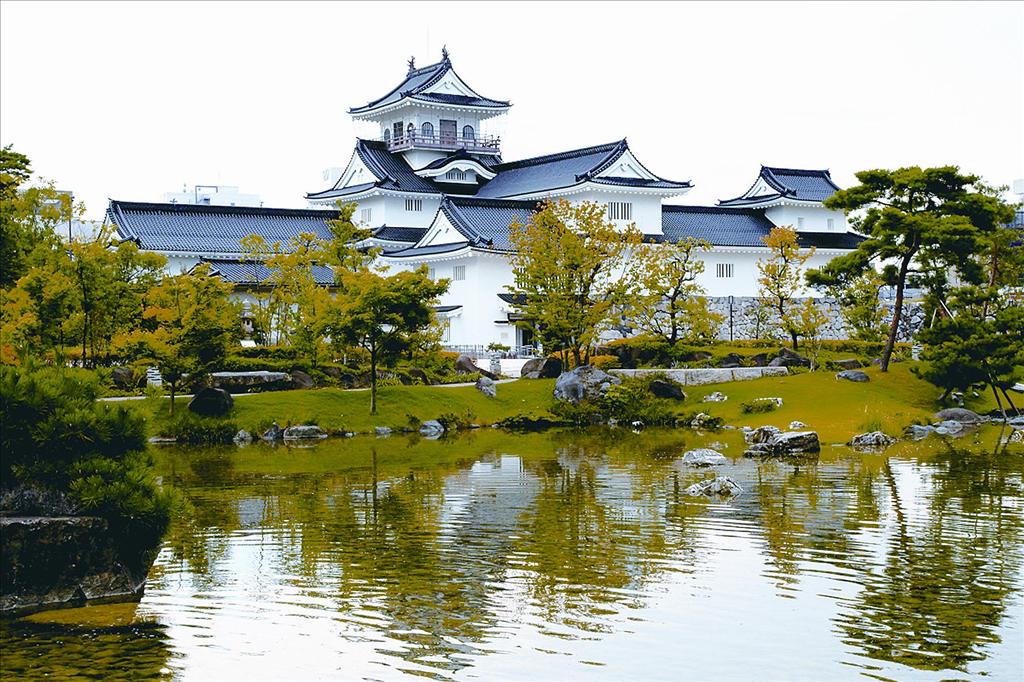 富山市内还有座城址公园,是始建于16世纪中叶的城池遗址,曾屡遭兵燹,多次易主,二战后重新修复。城楼与大阪城、名古屋城相似,周围有木桥、池塘、松柏。那天也是酒店前台指点迷津 ,又送了观光车票,我们趁雨停间隙去转了一圈。