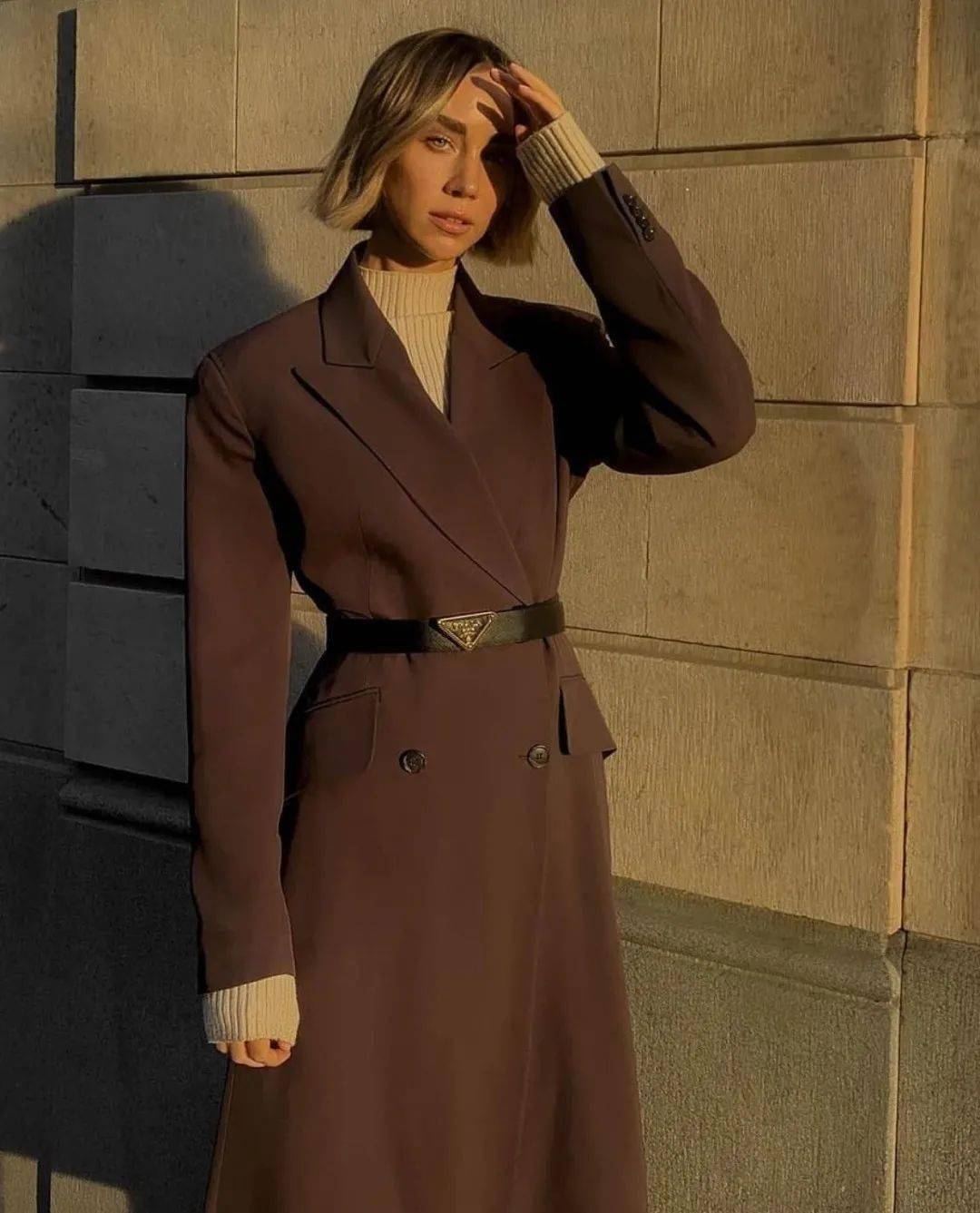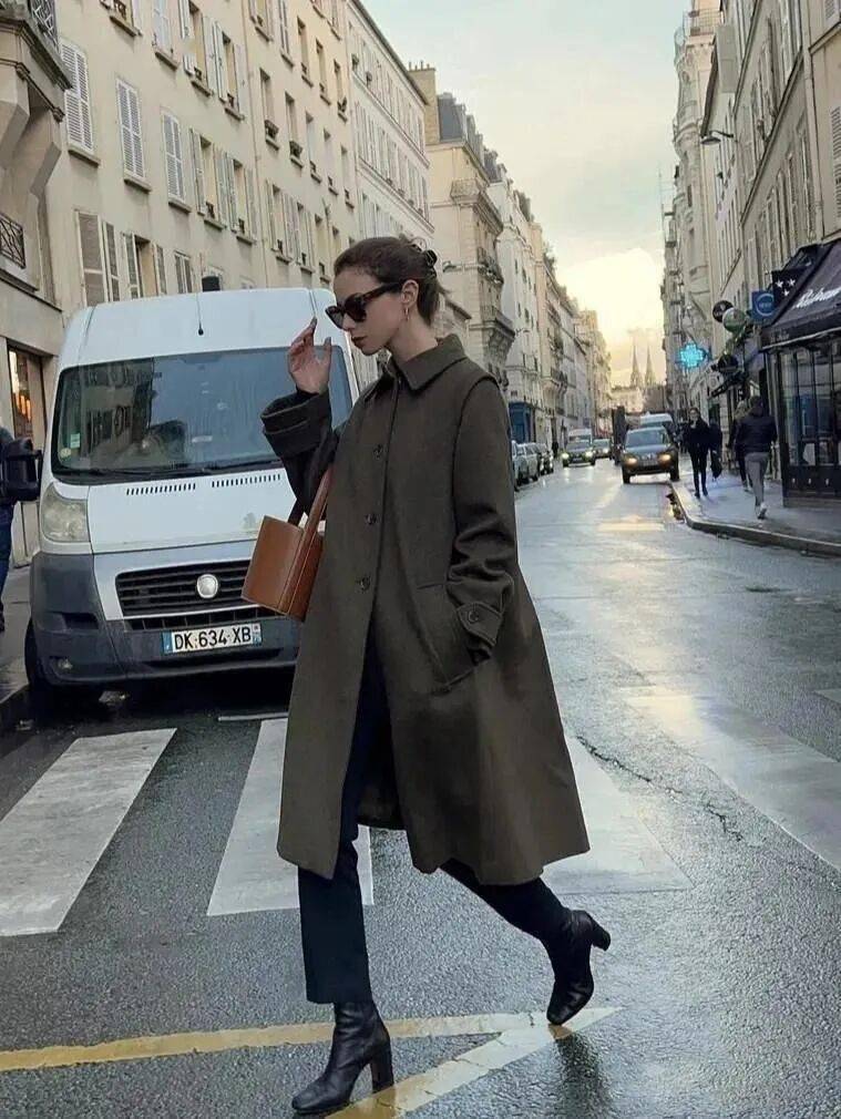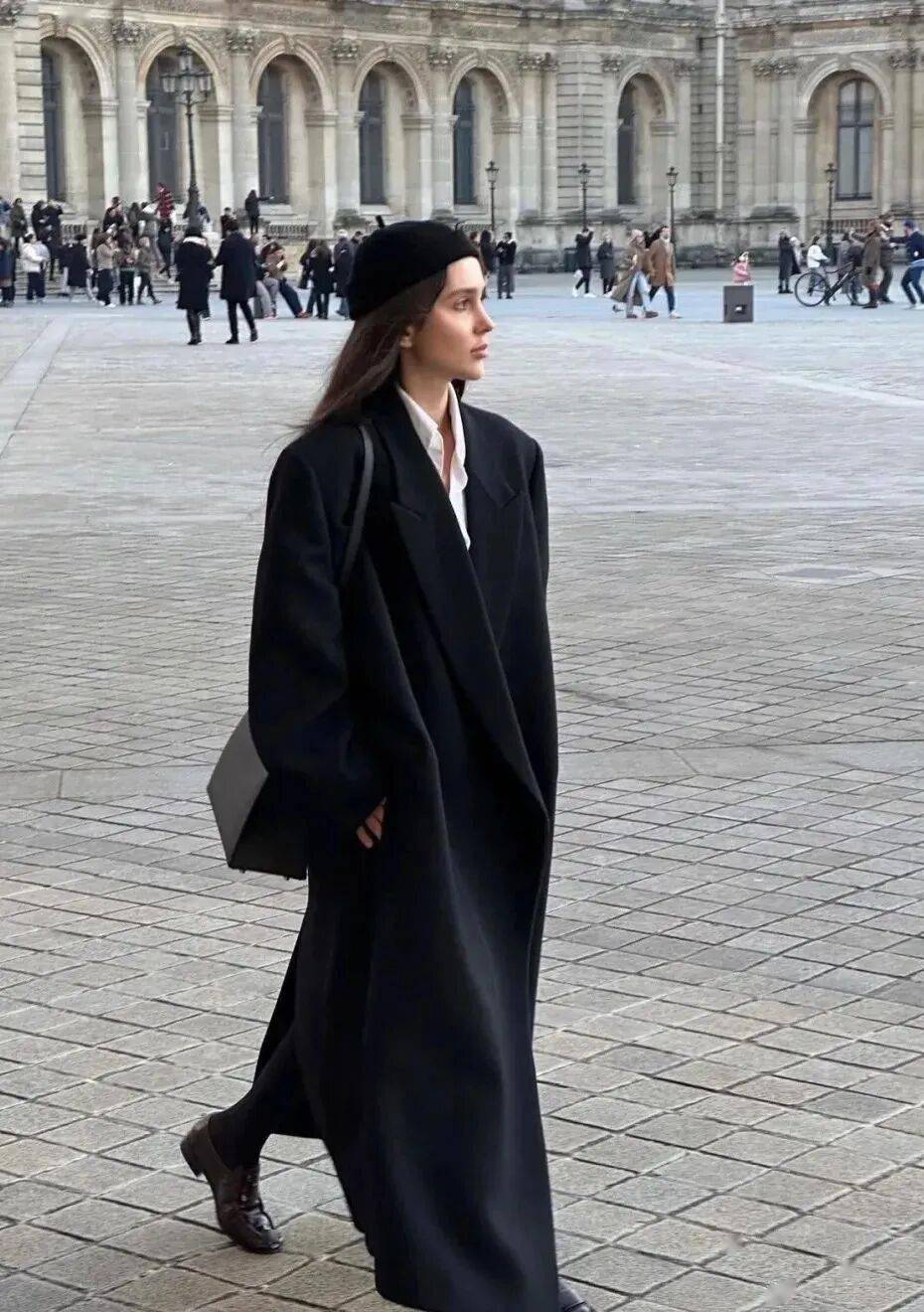 ** oversized大衣**:羊毛/羊绒材质垂坠感优先,长度至小腿中部,内搭同色系优化比例。