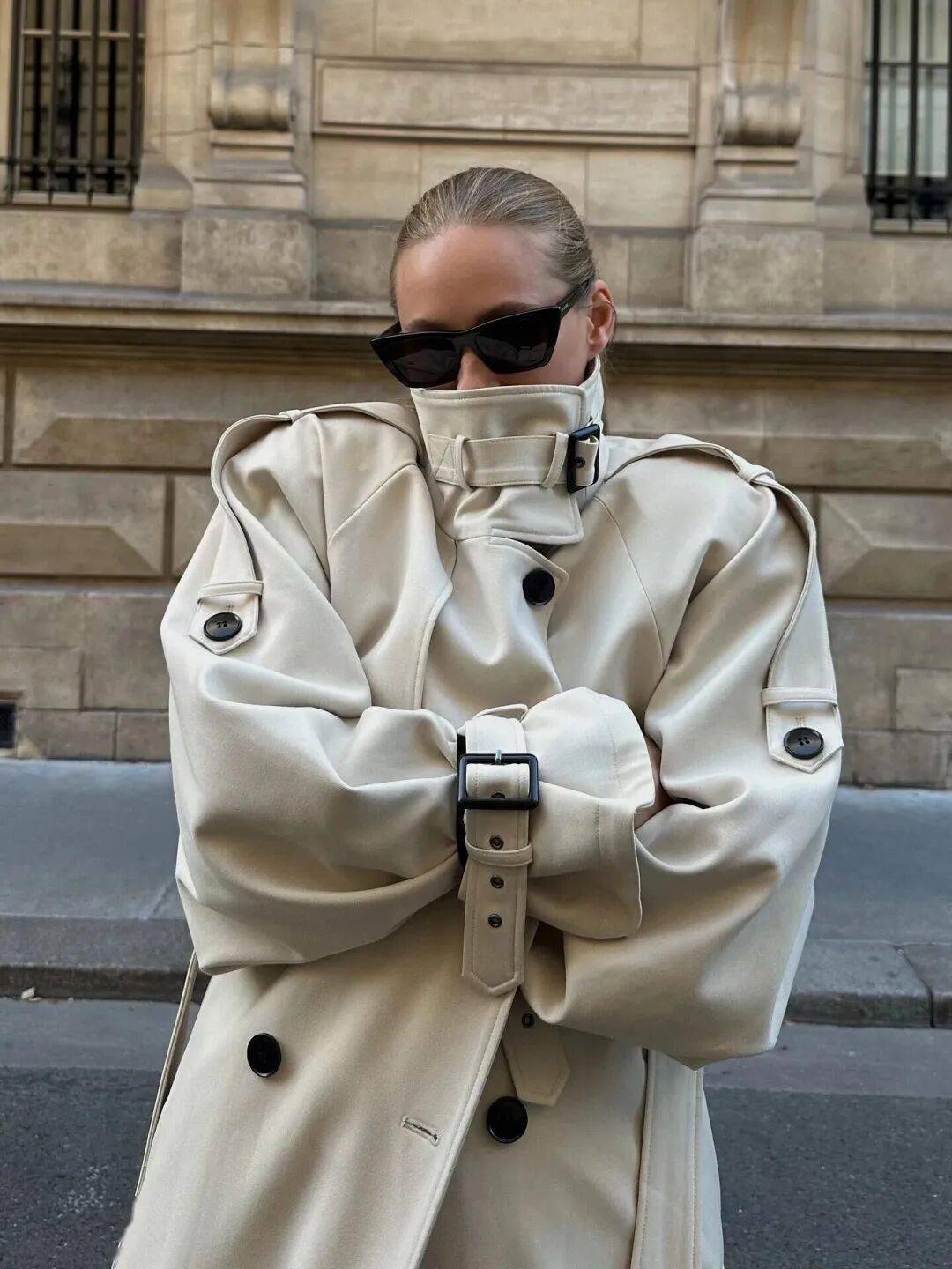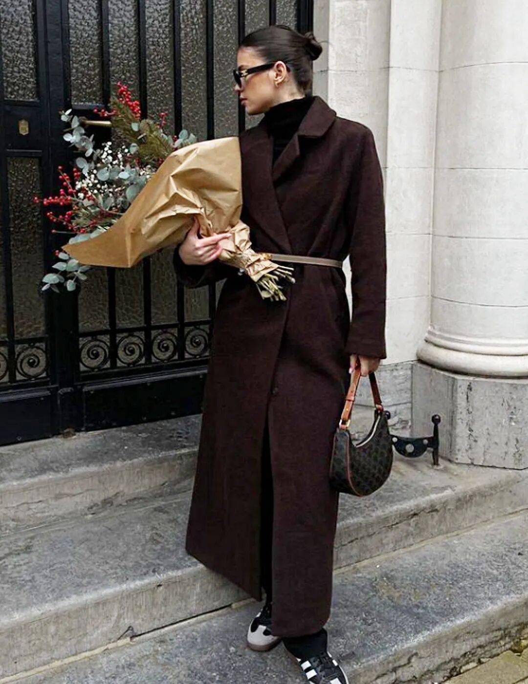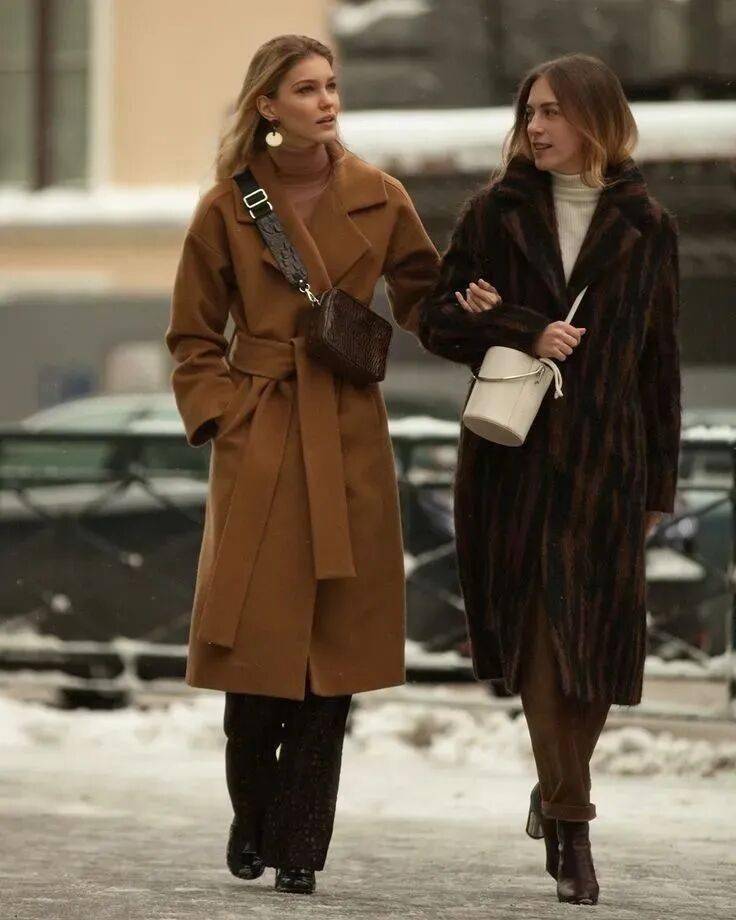 ** oversized大衣**:羊毛/羊绒材质垂坠感优先,长度至小腿中部,内搭同色系优化比例。