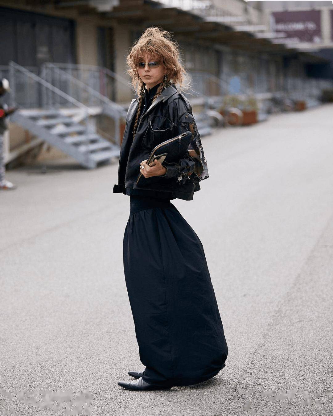 大廓形毛衣:落肩设计+绞花纹理,搭配缎面半裙刚柔并济。