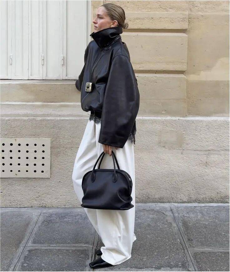 茧形羽绒服:蓬松填充+弧形廓形,兼顾温度与建筑感美学;亮面材质拼接皮革细节增添层次。