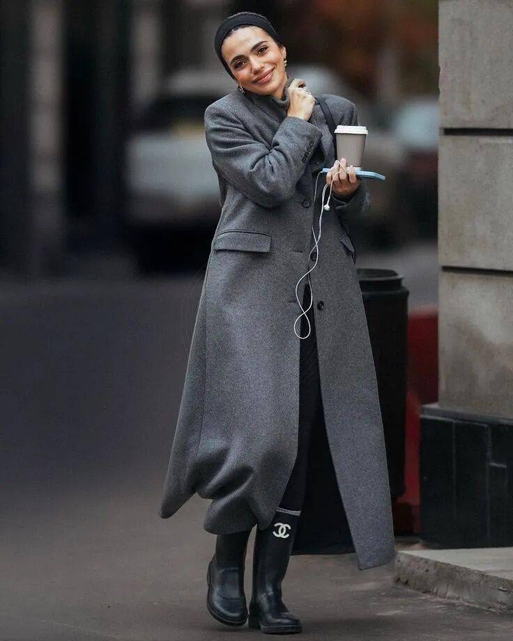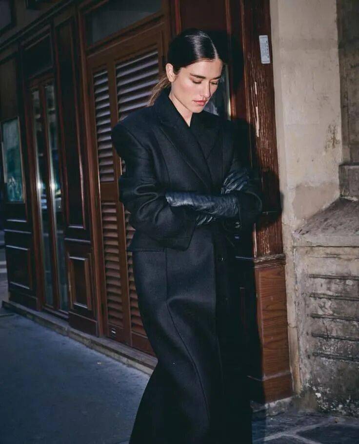 有些女人未开口,气场已满场。T型外套便是她们的隐形铠甲,清晰肩线撑起姿态。双排扣西装或大衣一上身,肩耸三分精气神立现——即便内搭旧毛衣、脚踏平底靴,也难掩凌厉。配顺滑西裤与尖头短靴,如刀锋出鞘,锐气藏于轮廓。