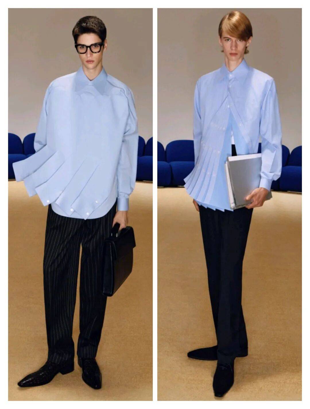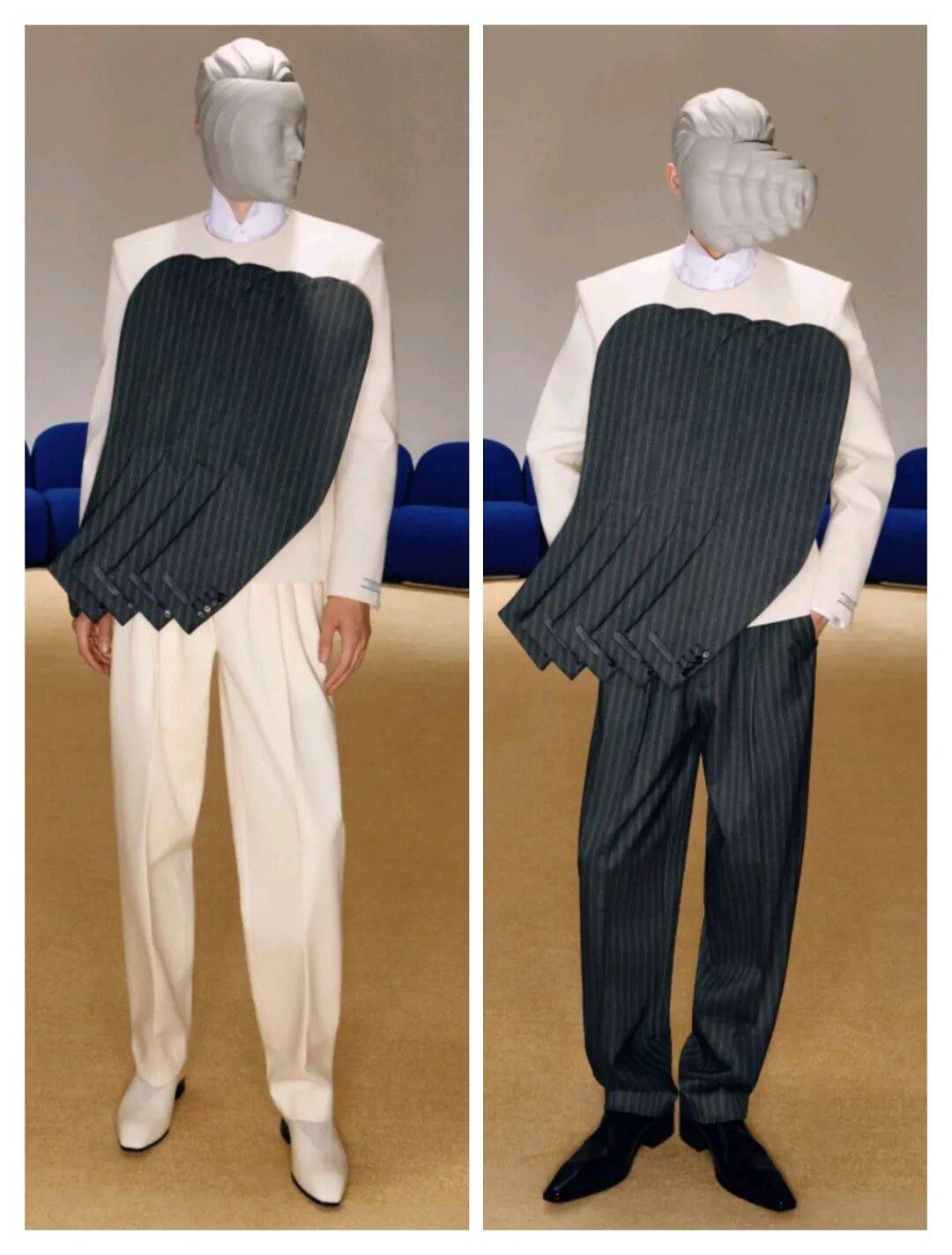 关键单品 . 解构主义西装:短款西装外套搭配阔腿西裤,加入街头元素(如连帽内衬、抽绳设计),打破西装的正式感;