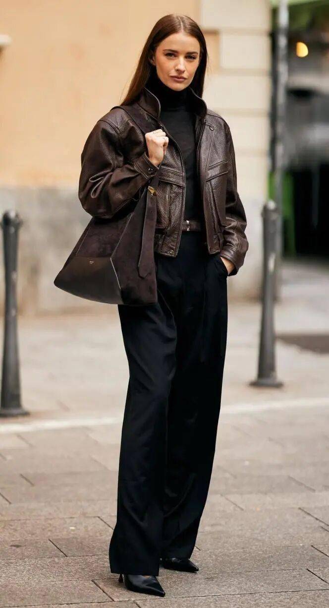 避免臃肿:选择贴身剪裁的高领衫作内搭,避免与紧身裤组合导致比例失衡。
