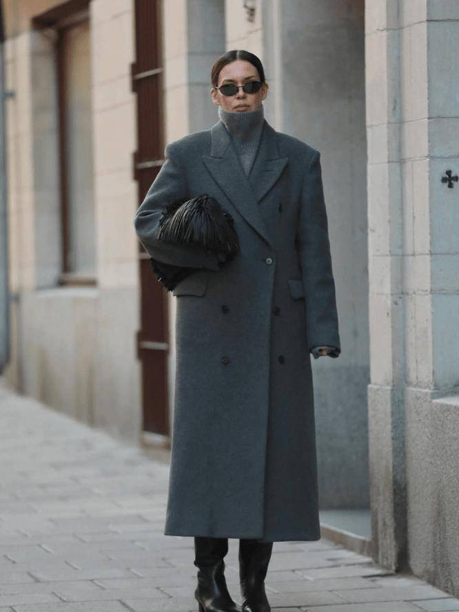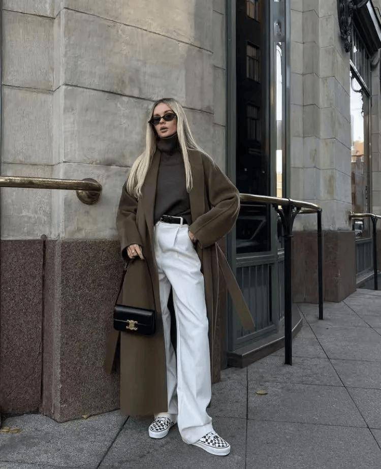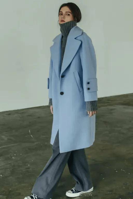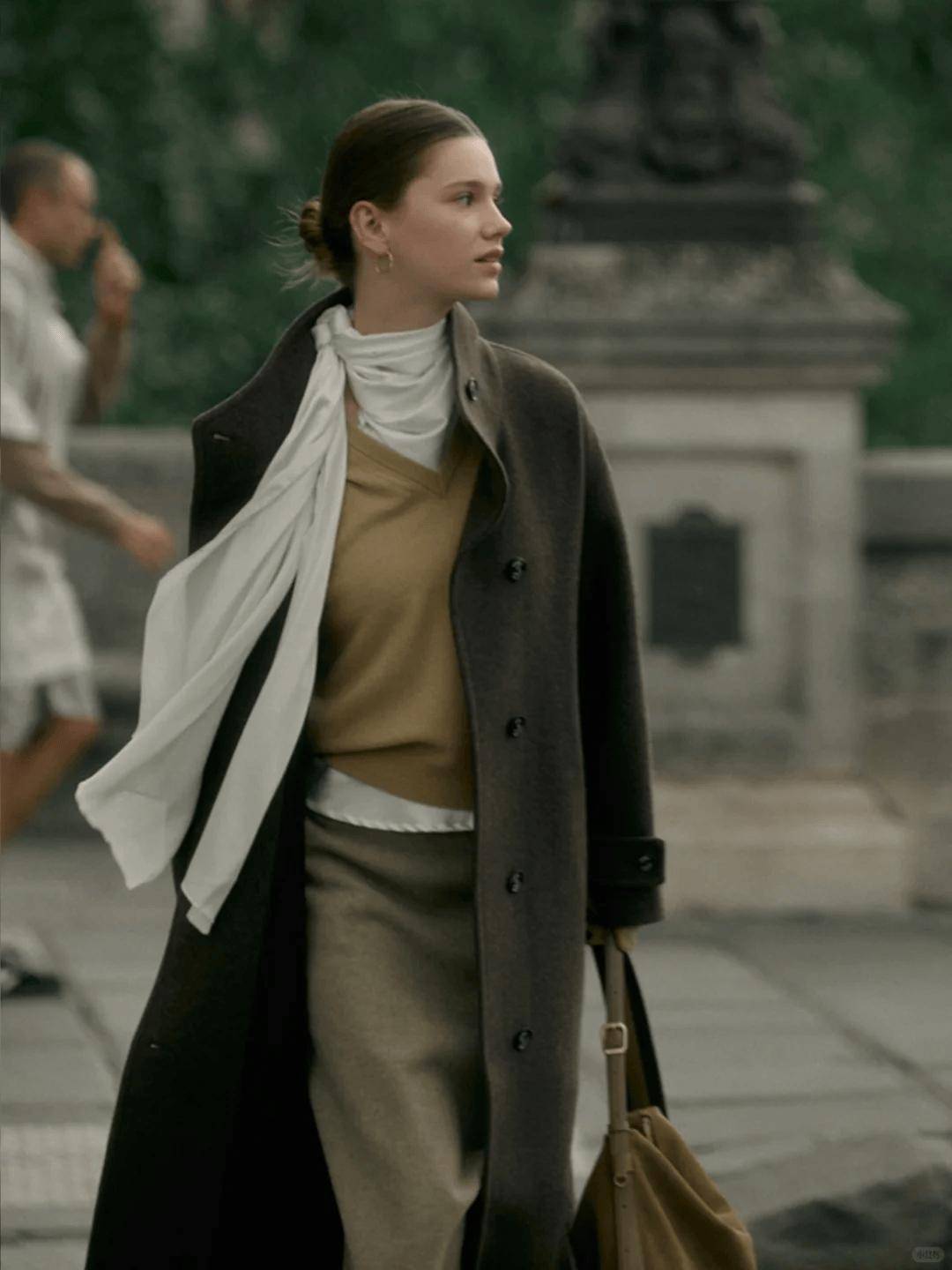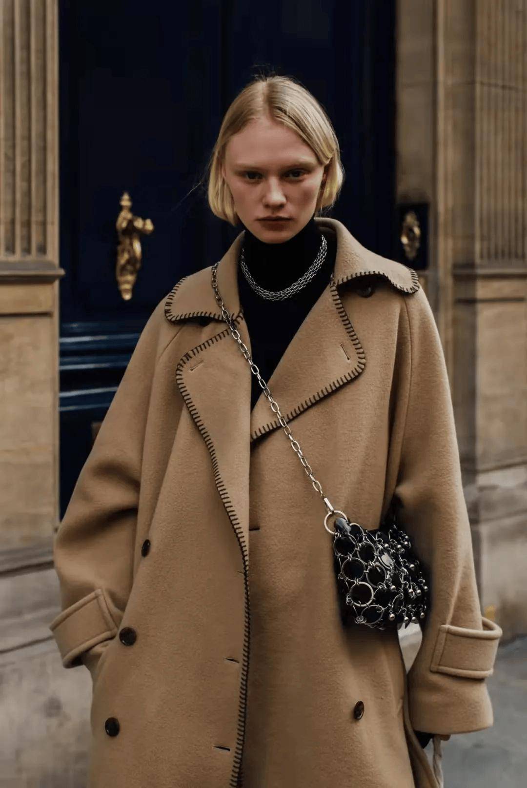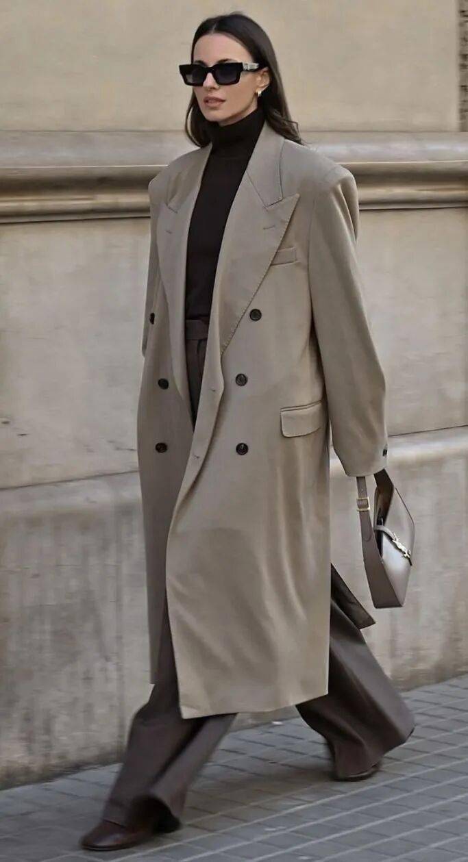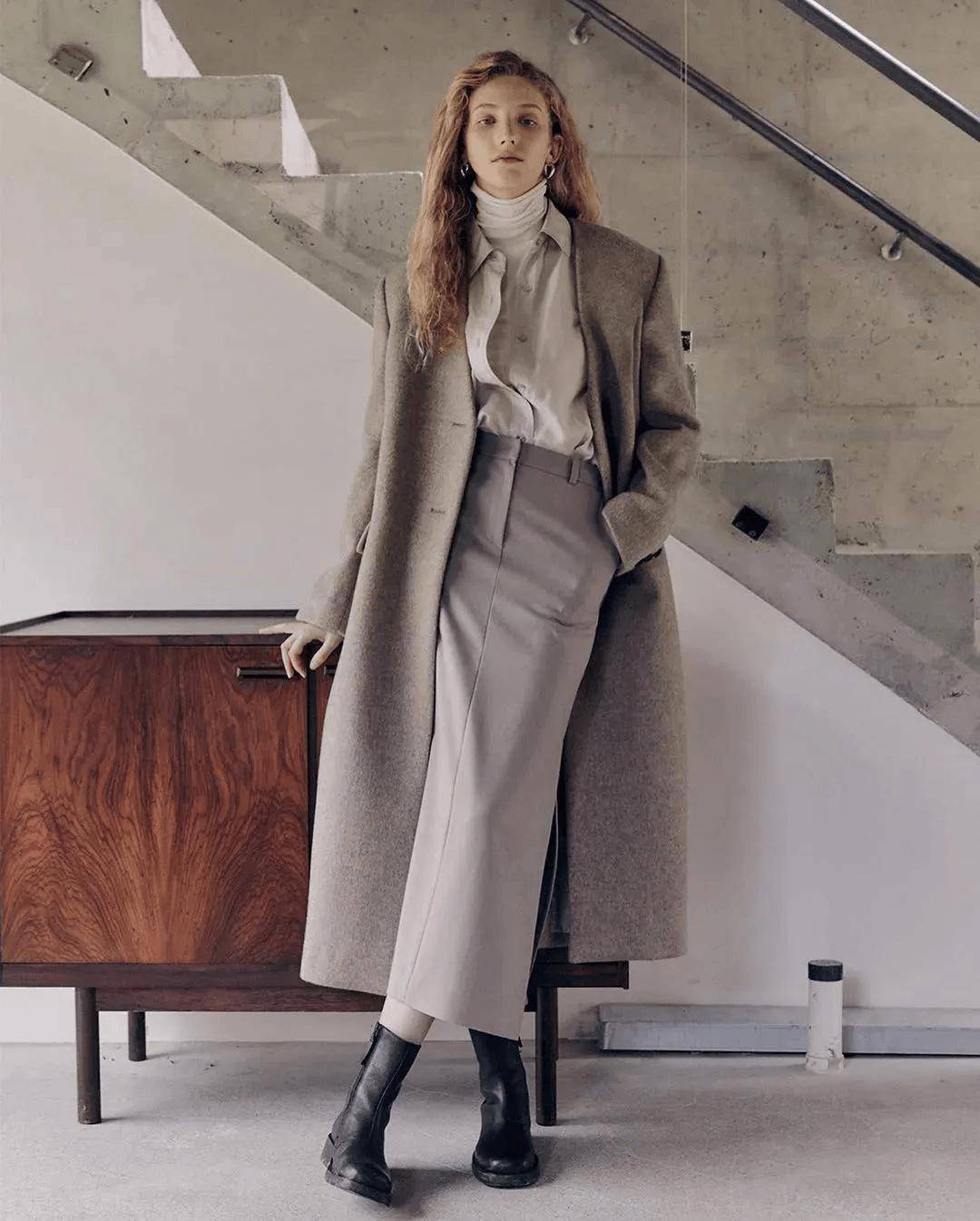 高领衫 + 大衣 长款呢大衣、风衣 直筒裤、阔腿裤、半身裙 短靴、高跟靴、乐福鞋 通勤、商务、日常出街