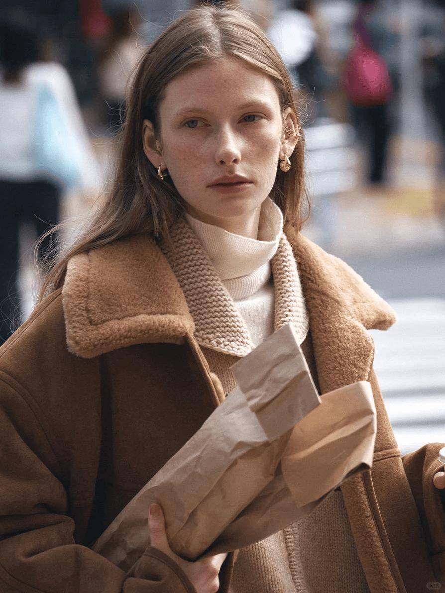 同色系搭配(如驼色大衣+米色高领衫)显高级、拉长身形;