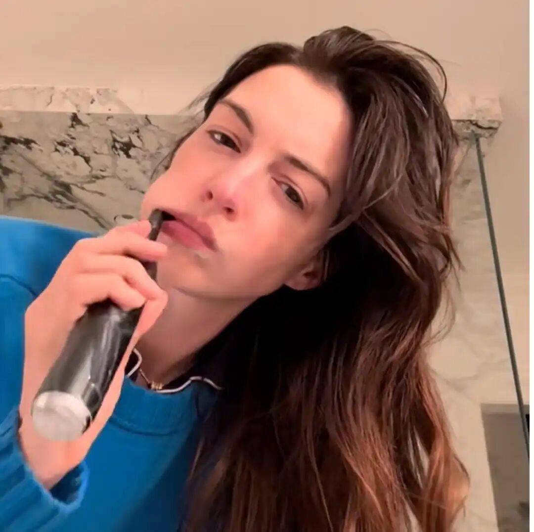 Prada2开拍的前一晚,安妮·海瑟薇为戏预热,特意上传了自己穿着蓝色毛衣刷牙的玩梗视频。也算是间接为20年前被嘲笑老土的蓝色毛衣鸣不平了。