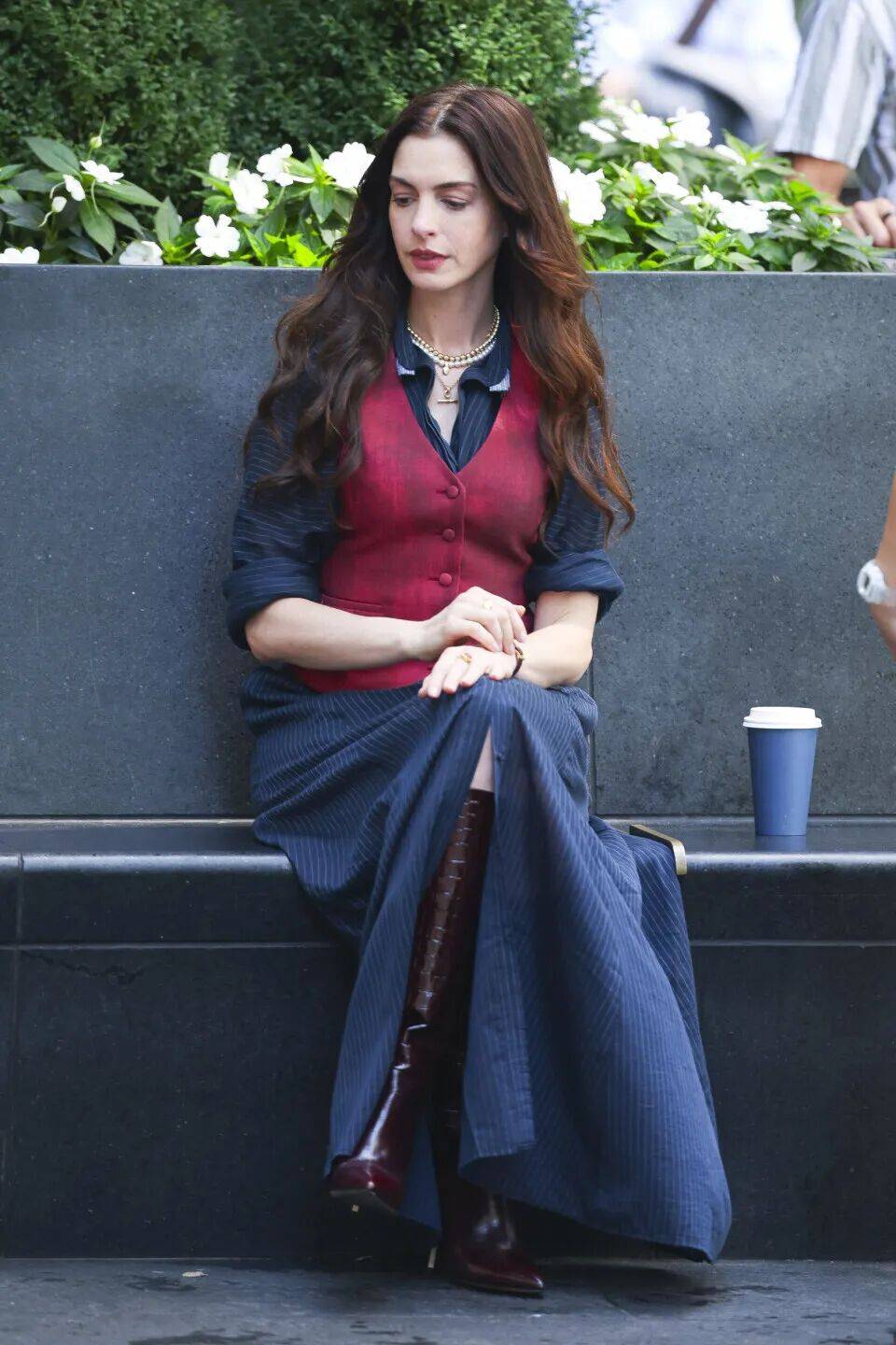 简约克制与实用主义:最新路透中,安迪的造型以Jean Paul Gaultier条纹马甲套装、灰色权力套装为主,线条利落偏中性化,鞋包配饰趋于统一,避免过度装饰。例如重复出现的单款珍珠项链被调侃“预算不足”,实则反映对“无破绽日常化精致”的追求。
