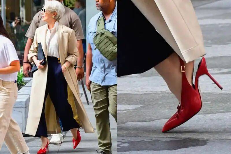 女王形象的符号延续与妥协:米兰达的Prada红鞋仍作为标志性元素保留,但整体造型因《Runway》杂志财务困境而“收敛”,反映角色事业下坡路的剧情设定,也暗喻传统时尚权威在数字时代的式微。