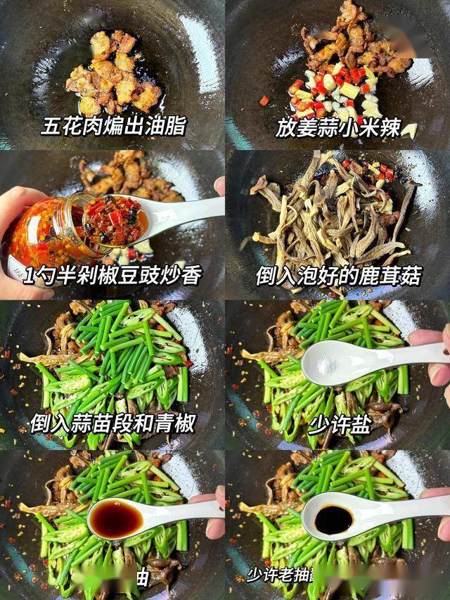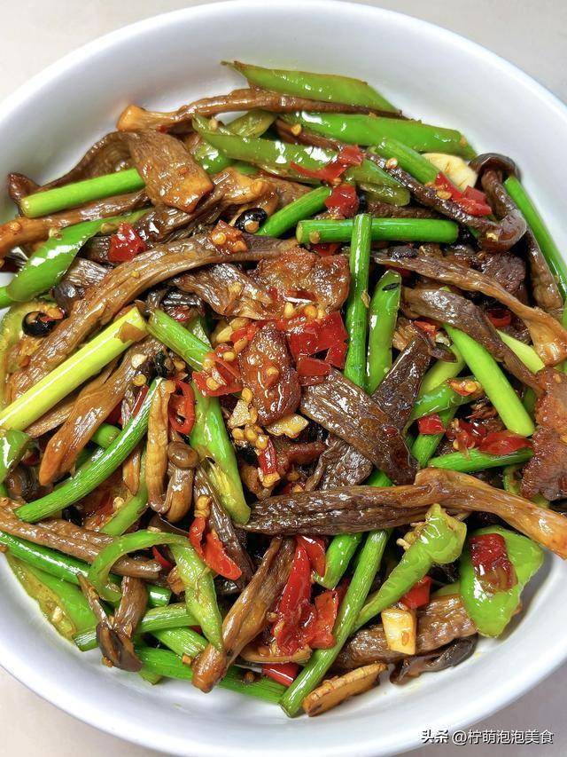 特点:这道菜色香味俱全,鹿茸菇的鲜美、蒜苔的脆爽和五花肉的香醇完美融合,每一口都是满满的幸福感。