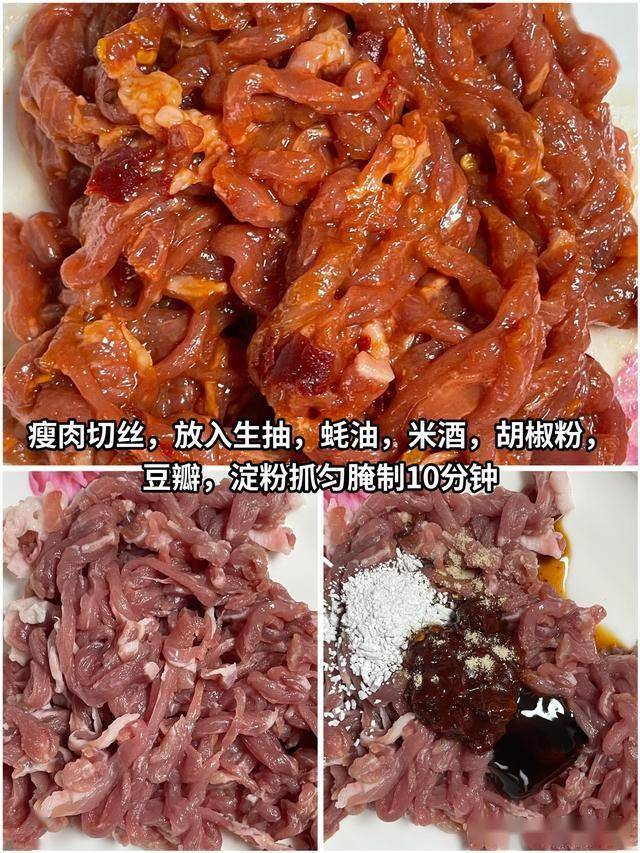 2. 腌制瘦肉:将瘦肉切成薄片,用生抽、料酒、淀粉腌制15分钟。