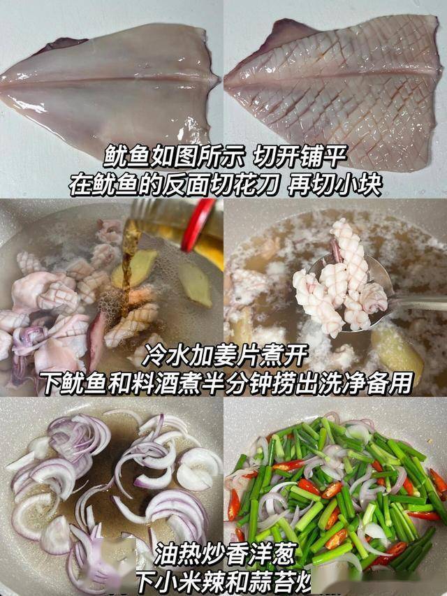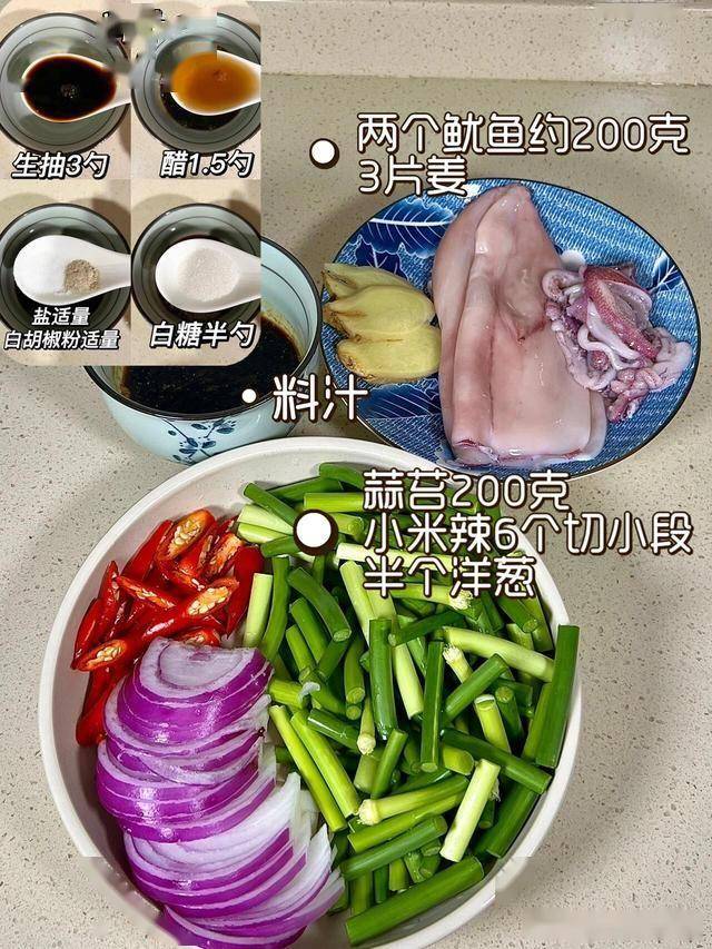 1. 处理鱿鱼:将鱿鱼洗净,切成薄片,用料酒、生抽腌制10分钟。