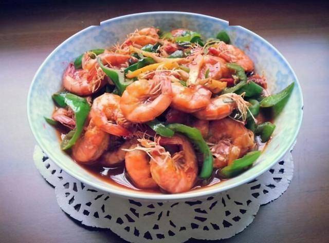材料:鲜虾250克青椒1个;葱姜蒜适量生抽适量料酒1茶匙;