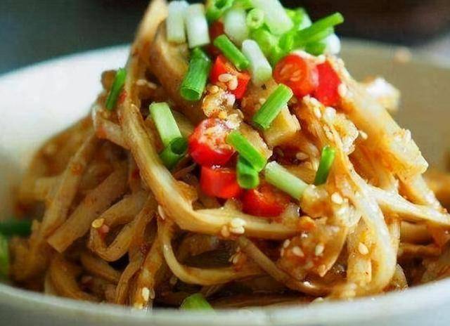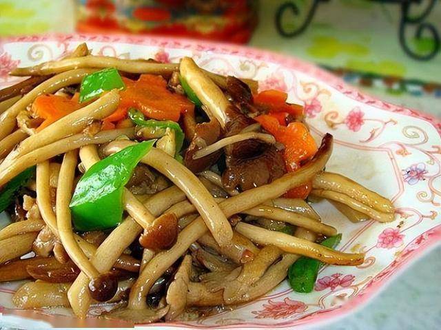 3.将茶树菇入开水中焯一分钟,捞出沥干水分。