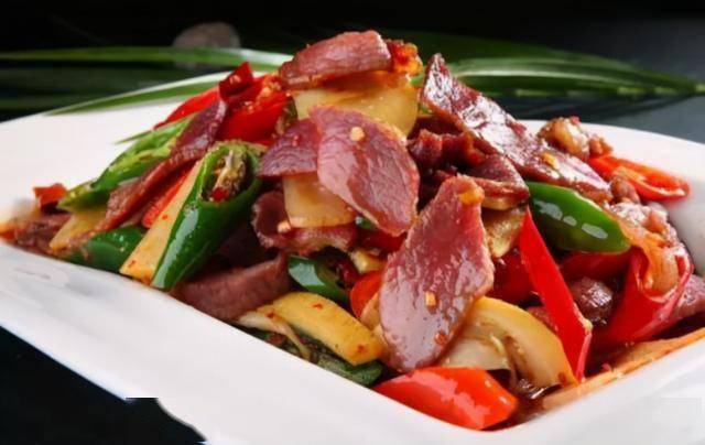 2、将腊肉腊肠切片待用。青椒,红椒切块。