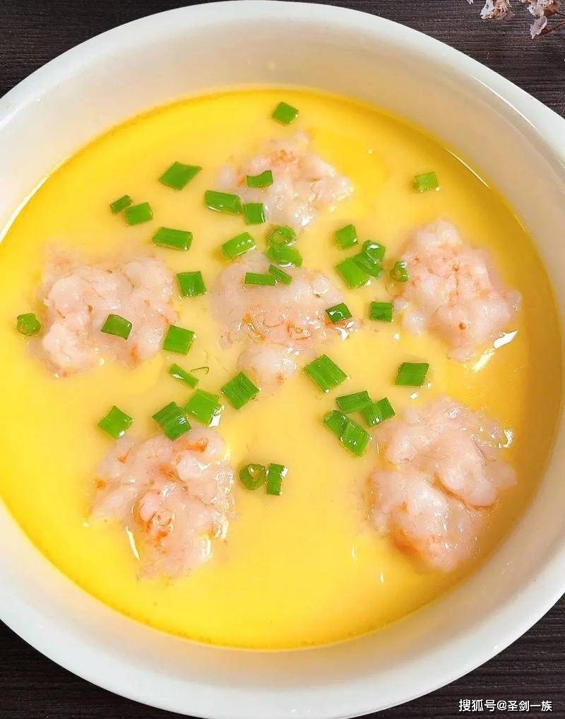 鸡蛋4个、新鲜虾仁100克、葱花少许、盐2克、白胡椒粉1克、香油几滴、海鲜酱油1勺、温水适量