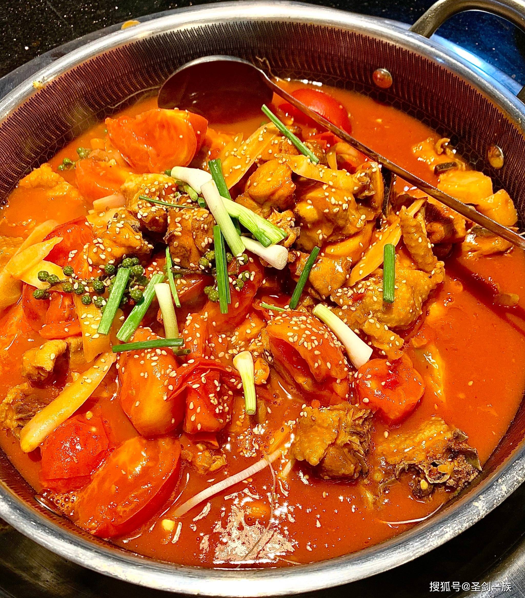 番茄、鸡肉、姜丝、胡椒粉、料酒、姜、葱、蒜、干辣椒、青花椒、番茄酱、生抽、蚝油、砂糖、盐