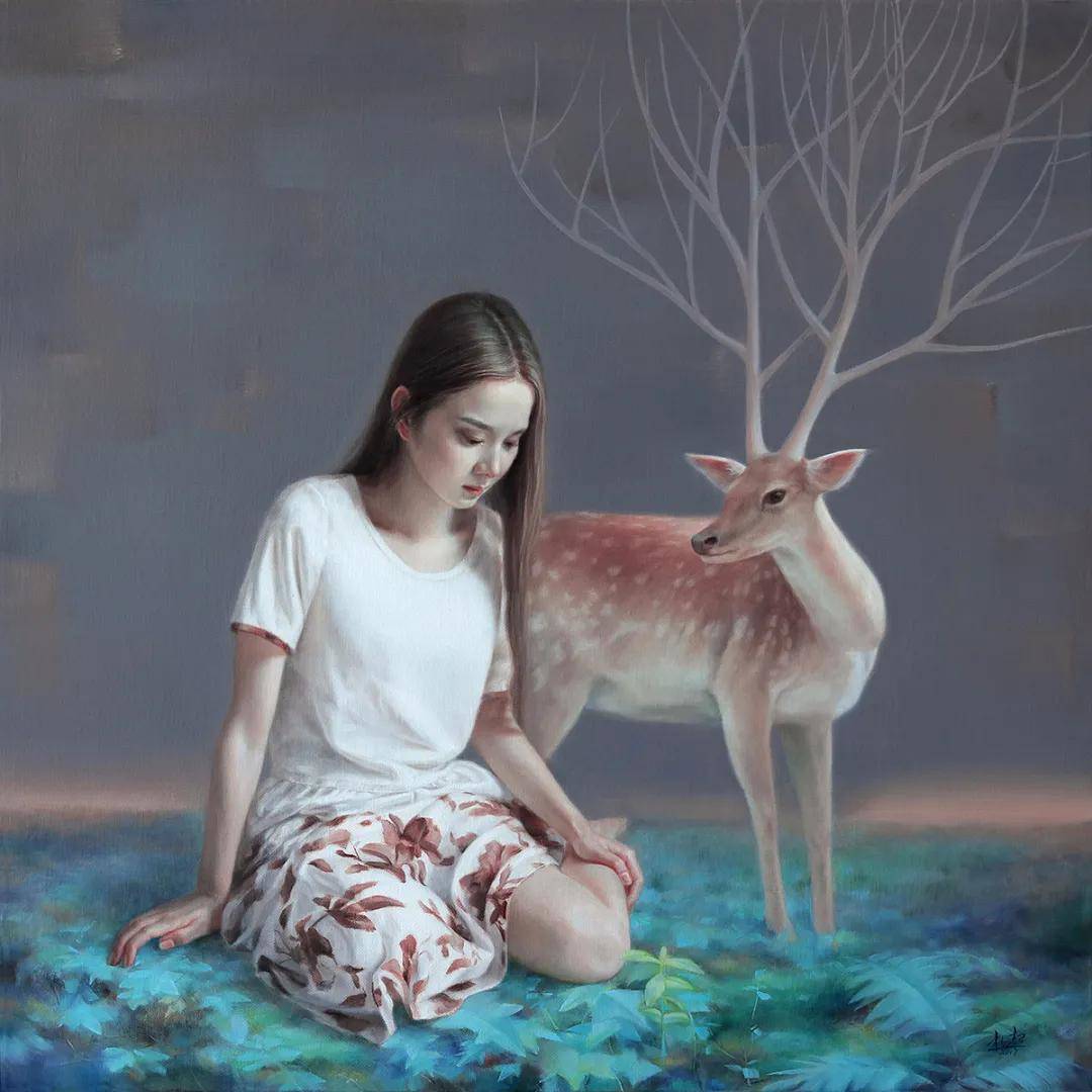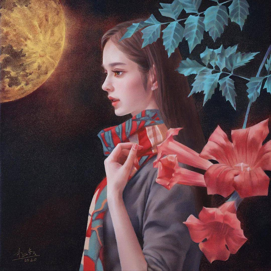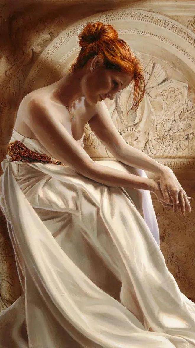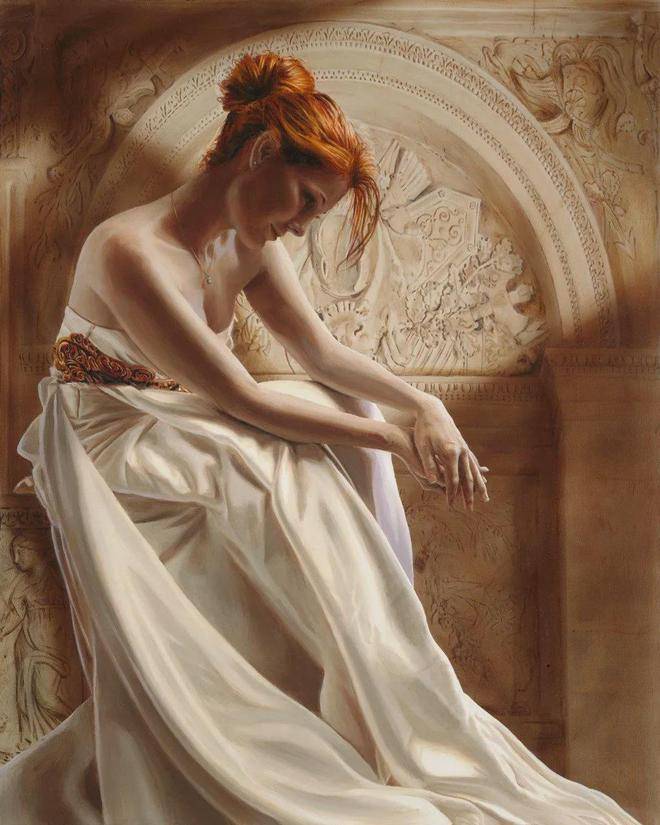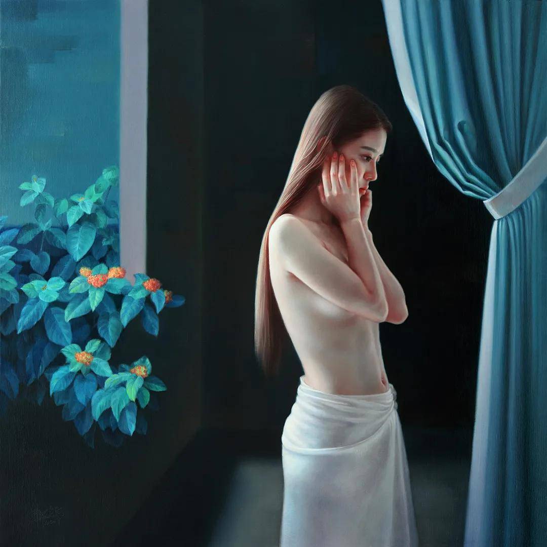 他的油画完美捕捉东方女子的纯净与优雅!(修改中)