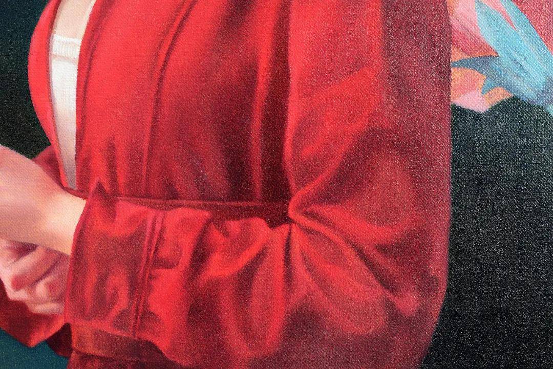 这种对女性美的礼赞,既延续了千年艺术传统中对造物之美的惊叹,又以现代视角赋予其新的诠释维度。在艺术的长河中,对女性美的描绘一直是永恒的主题,从古希腊的雕塑到文艺复兴时期的绘画,无数艺术家都用自己的方式诠释着女性的魅力。杨超继承了这一传统,同时融入了现代社会的价值观和审美观念。在她的作品中,我们既能看到古典美学的优雅与庄重,又能感受到现代艺术的创新与活力。她在含蓄与奔放、张扬与安静的张力中,展现出优雅气质与丰富心理的双重交响。含蓄的表达如同潺潺溪流,润物无声,让人在不经意间感受到女性的温柔与内敛;奔放的笔触则似汹涌的波涛,激情澎湃,展现出女性的活力与自信。张扬的色彩和姿态彰显着女性的个性与魅力,而安静的氛围和神态又透露出女性的深沉与内敛。这种张力的存在,使得她的作品更加富有层次感和感染力,让观者能够深刻体会到女性复杂而多元的内心世界。